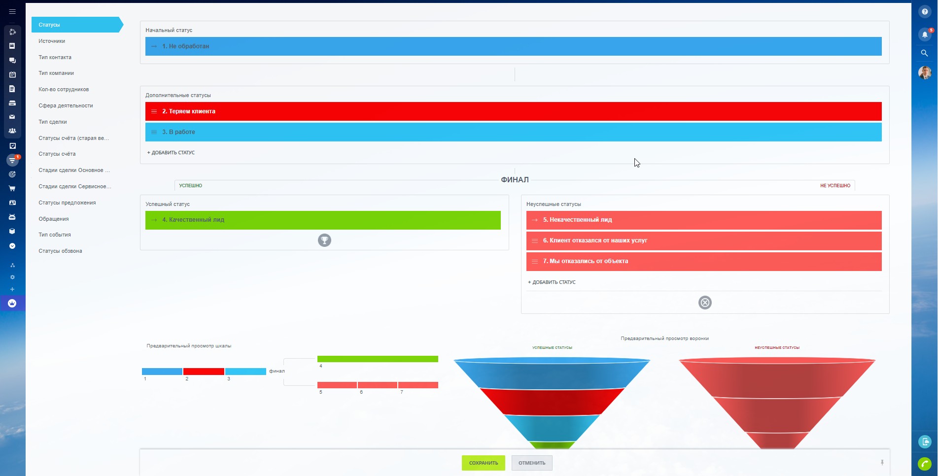 Воронка "Сервисное обслуживание" включает в себя стадии: