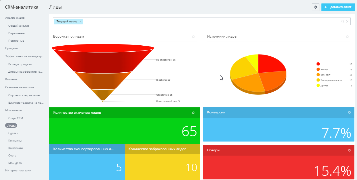 В готовом решении используется этап ЛИДов для фильтрации поступающих заявок по принципу: "клиент/не клиент". Также менеджер принимает решение, в каком направлении будет создана сделка.
