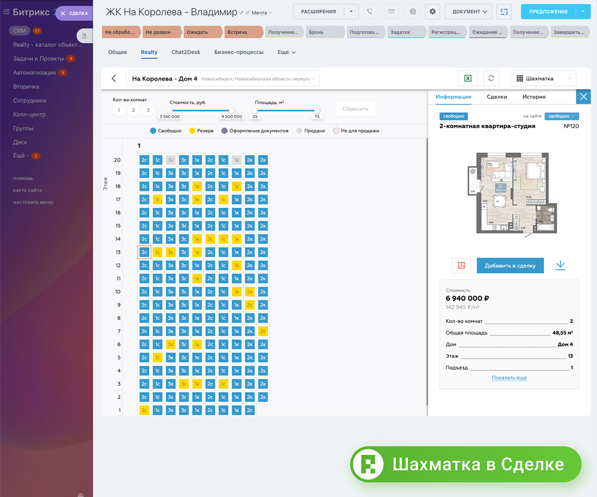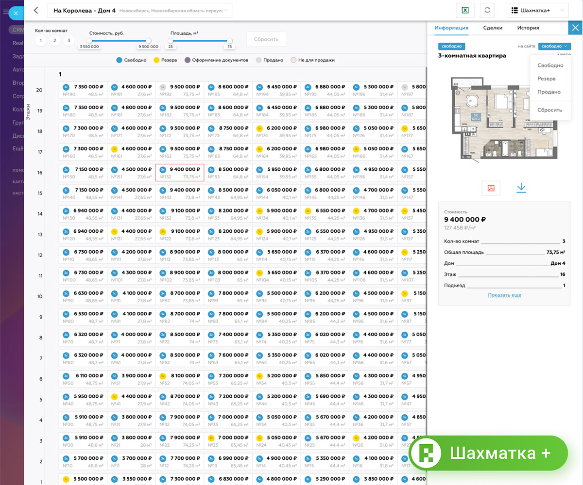 Realty - Шахматка, каталог и инструменты эффективных продаж недвижимости
