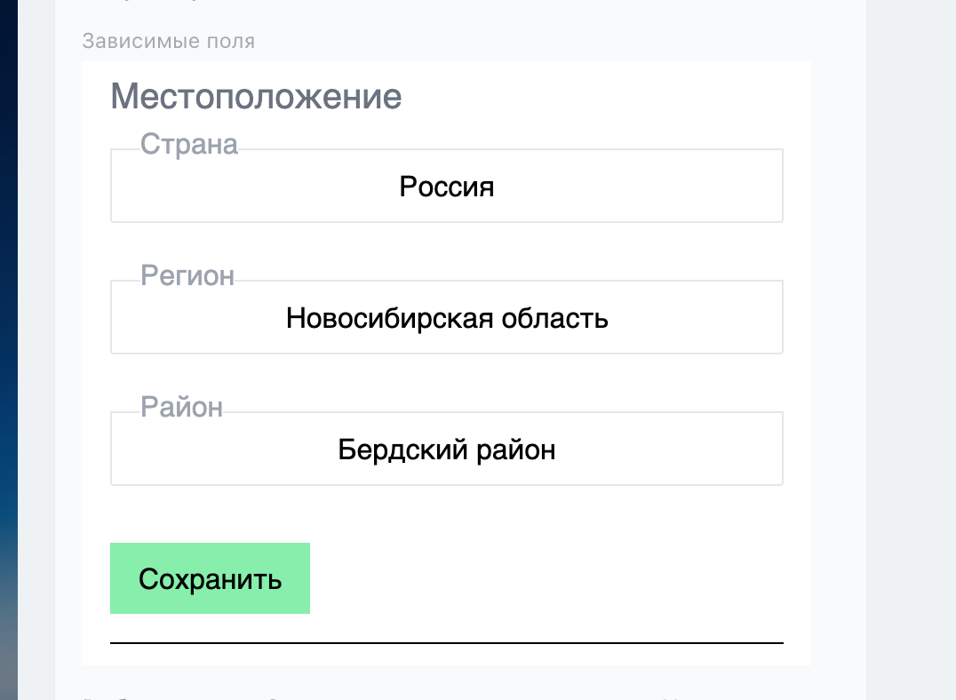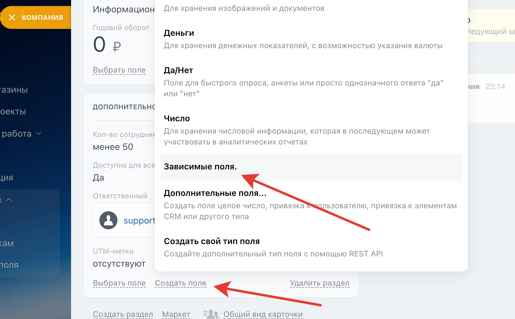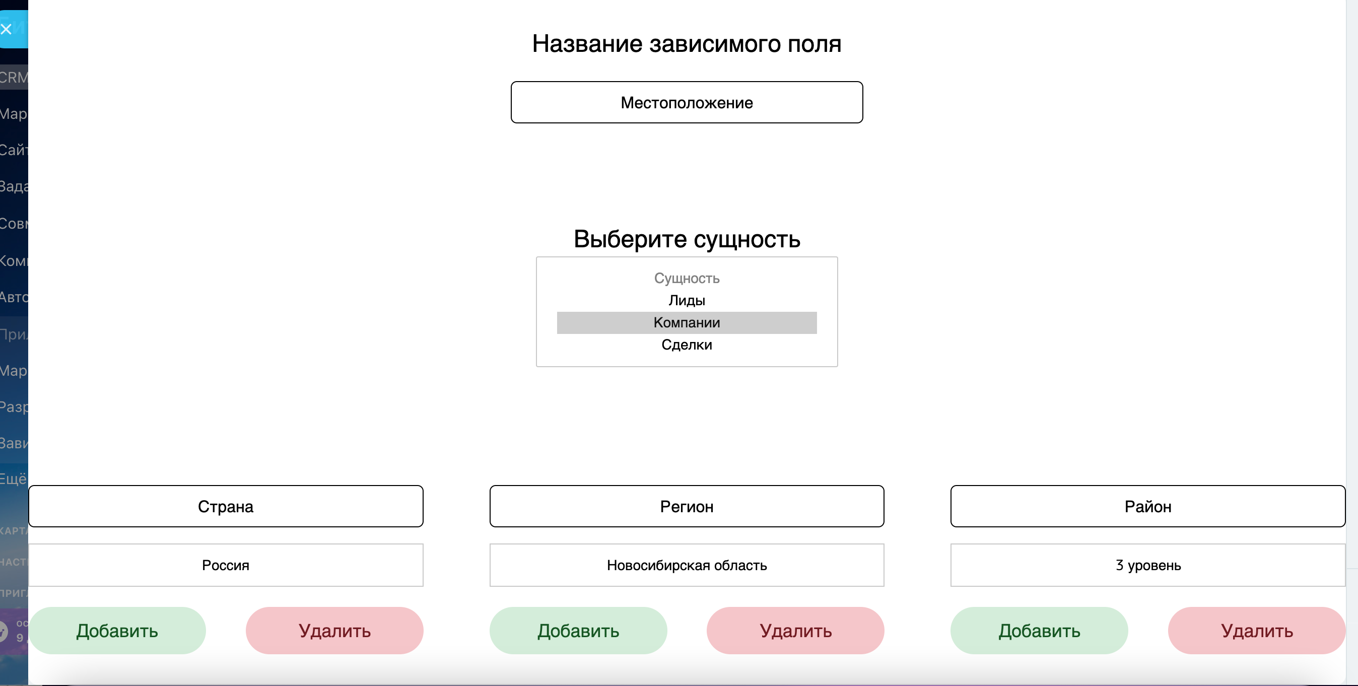 После установки и настройки приложения, в зависимости от выбранных сущностей, необходимо добавить поле "Зависимые поля" из списка (фото 4)