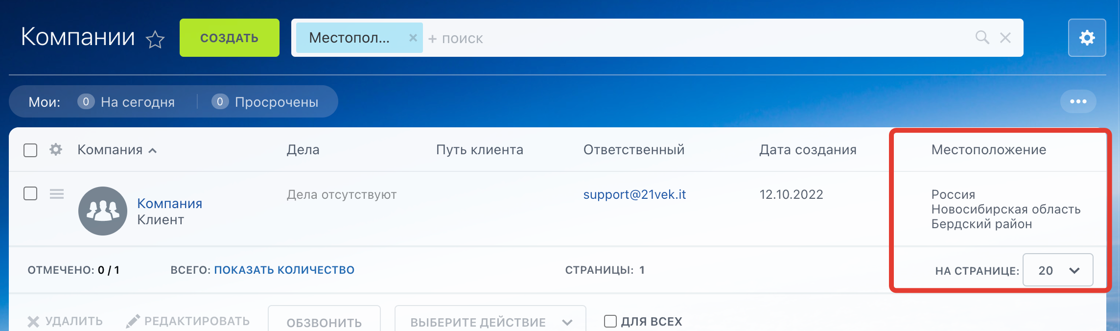 Встройка зависимых полей в Компании, Лиды, Сделки. Фильтрация