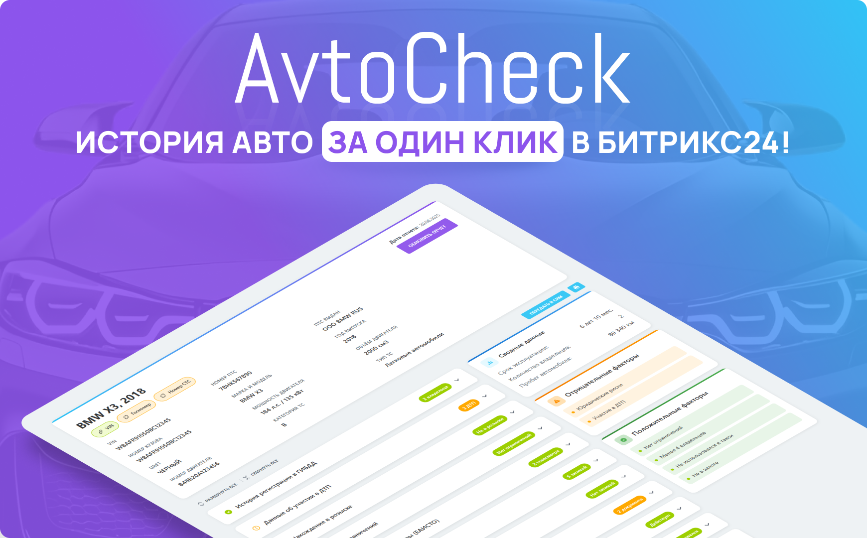 С приложением AvtoCheck ваши менеджеры получают исчерпывающие отчеты по автомобилям не покидая карточку Лида или Сделки. Больше никакого ручного копирования VIN-номеров, никаких ошибок при переносе данных и никаких сомнений при принятии решения.