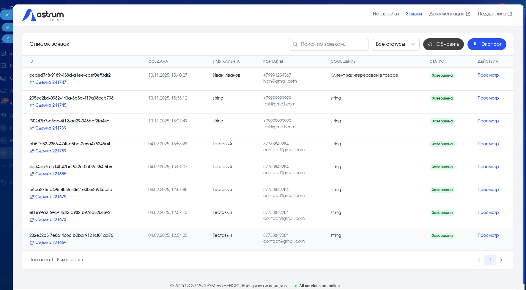 Приложение для автоматического приема заявок с сайтов и создания контактов, сделок и лидов в Битрикс24 через REST API.