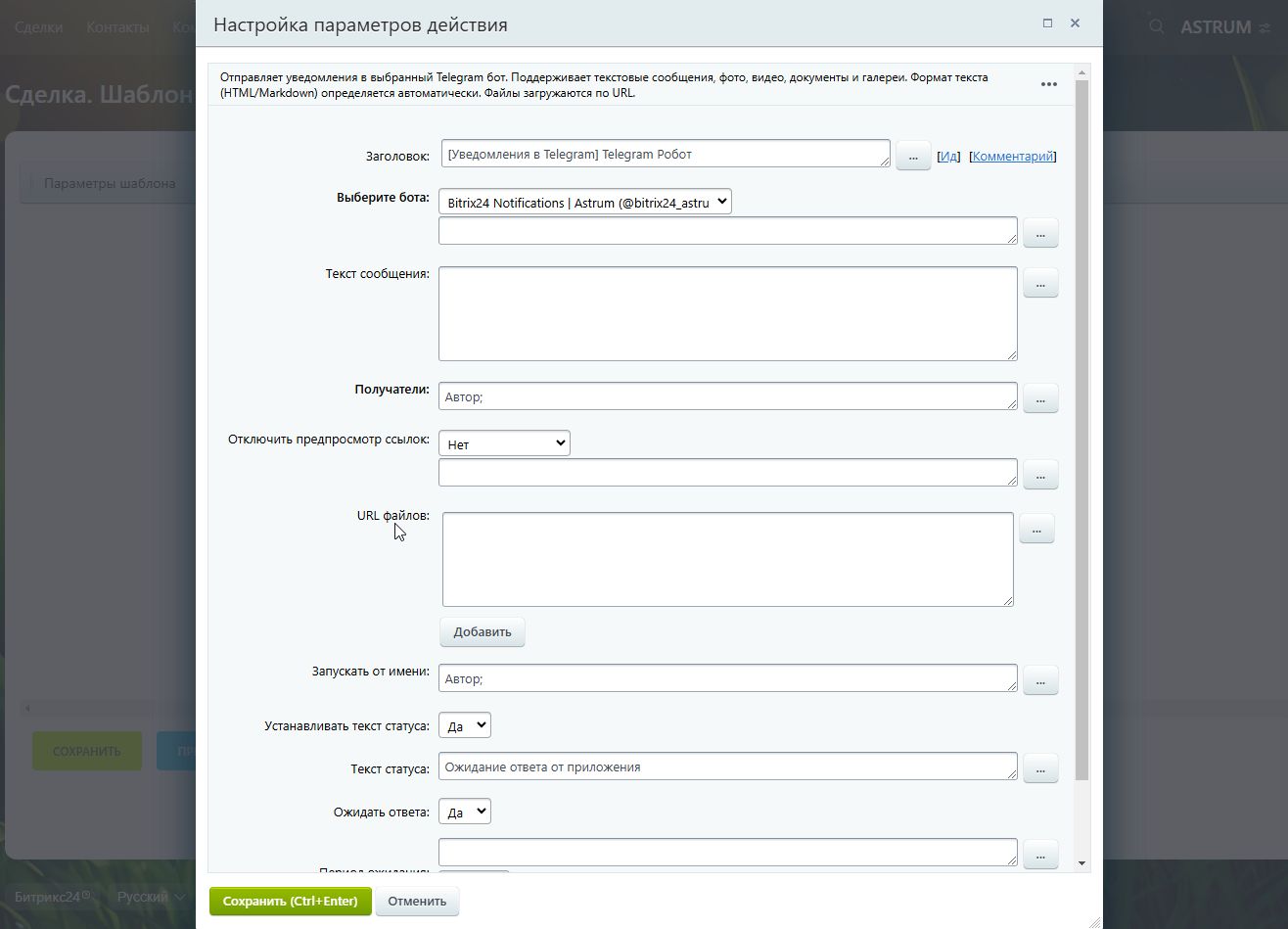Простое и эффективное решение. Настроили за пару минут - уведомления из Битрикс24 теперь летят в Telegram без задержек. Работает стабильно!