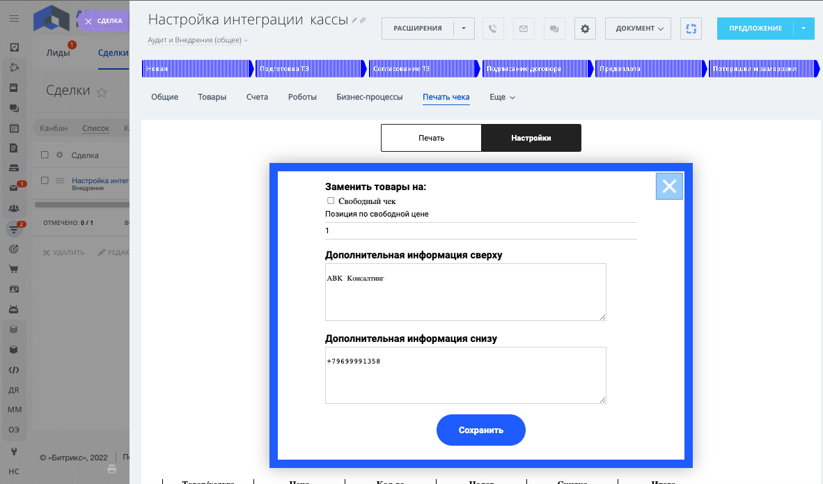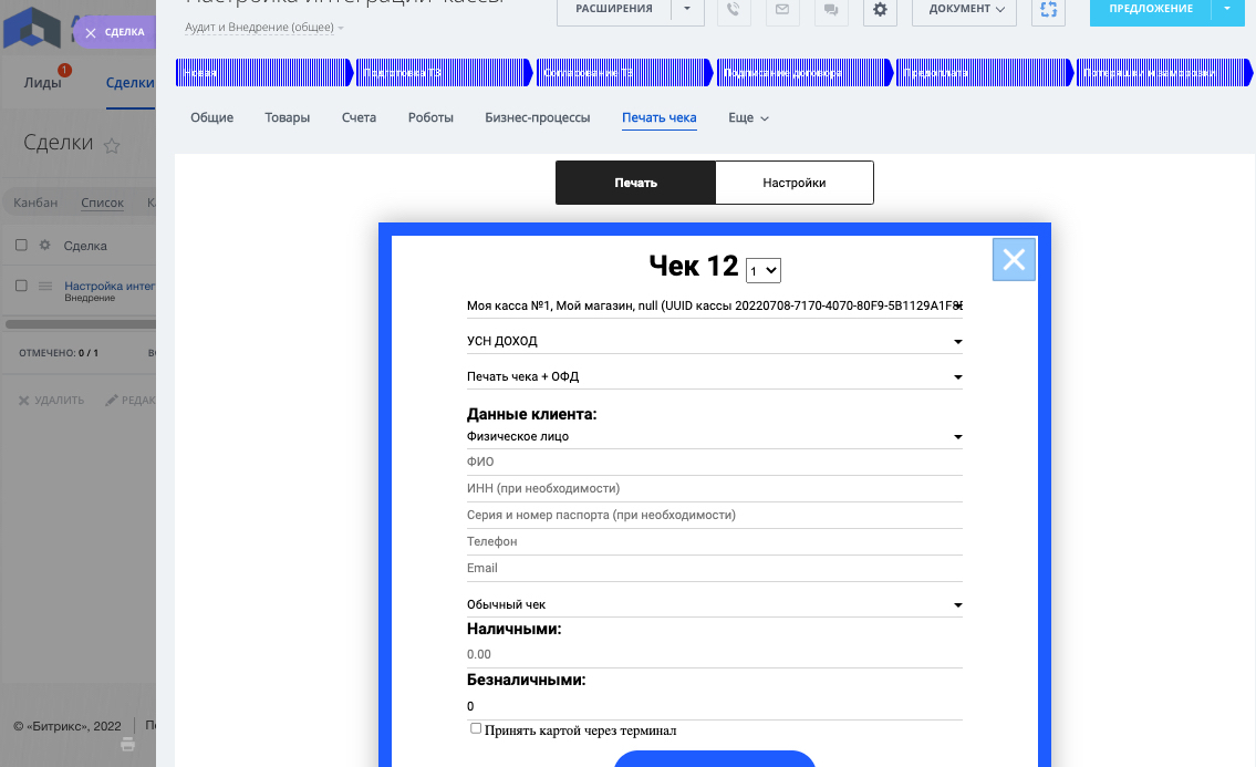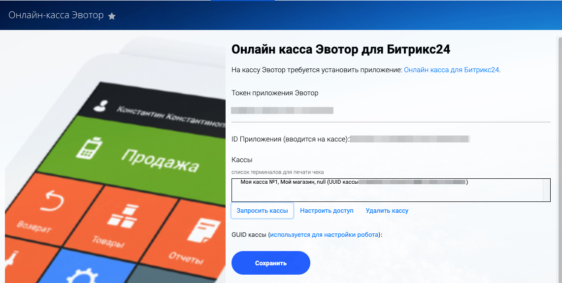 Интеграция Битрикс24 с онлайн-кассой Эвотор Печать чека в один клик Чек автоматически формируется на основе данных CRM. Автоматическое открытие смены
