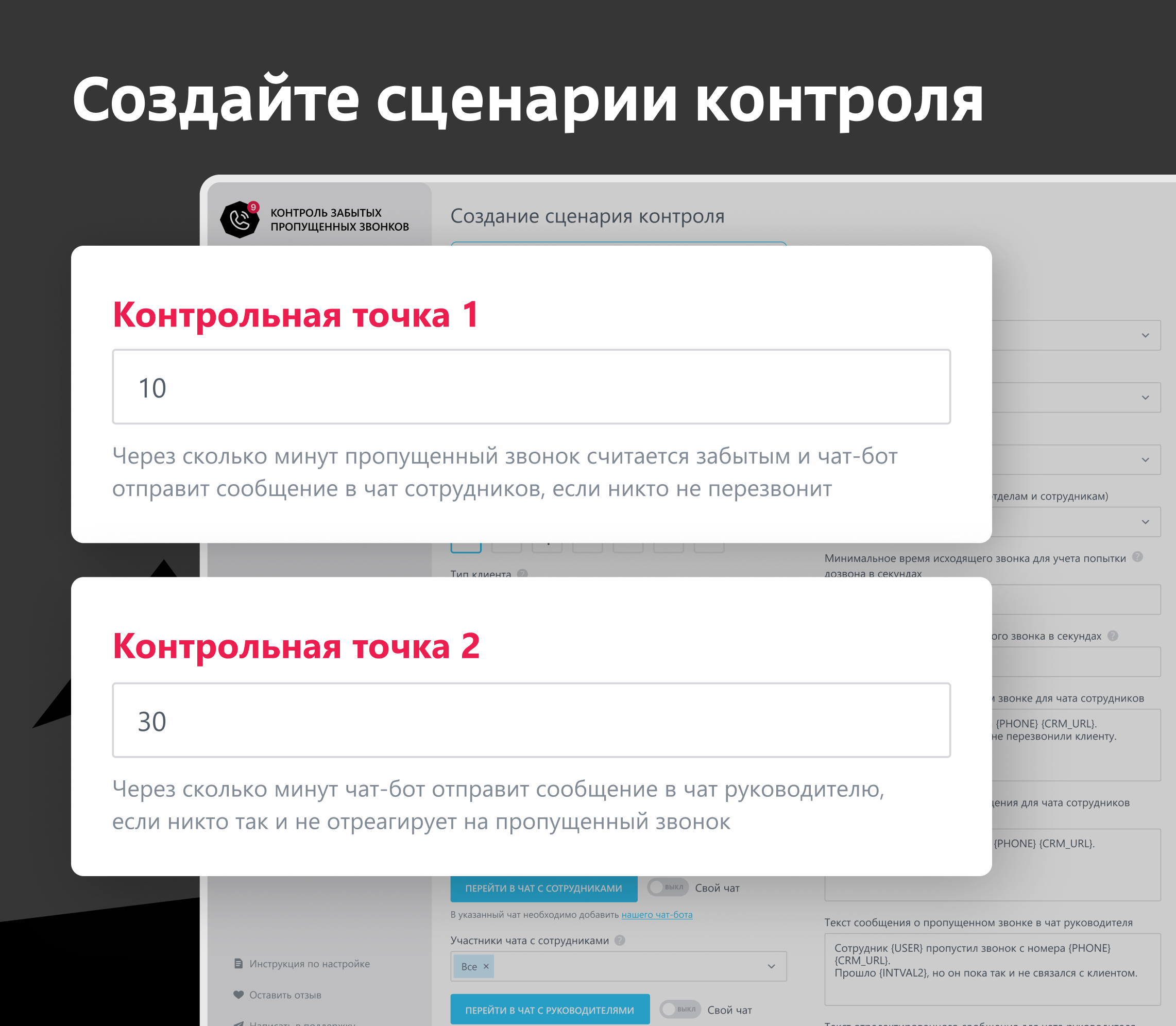 → Прошло 30 минут — никто не перезвонил. (контрольная точка 2, настраиваемый параметр)