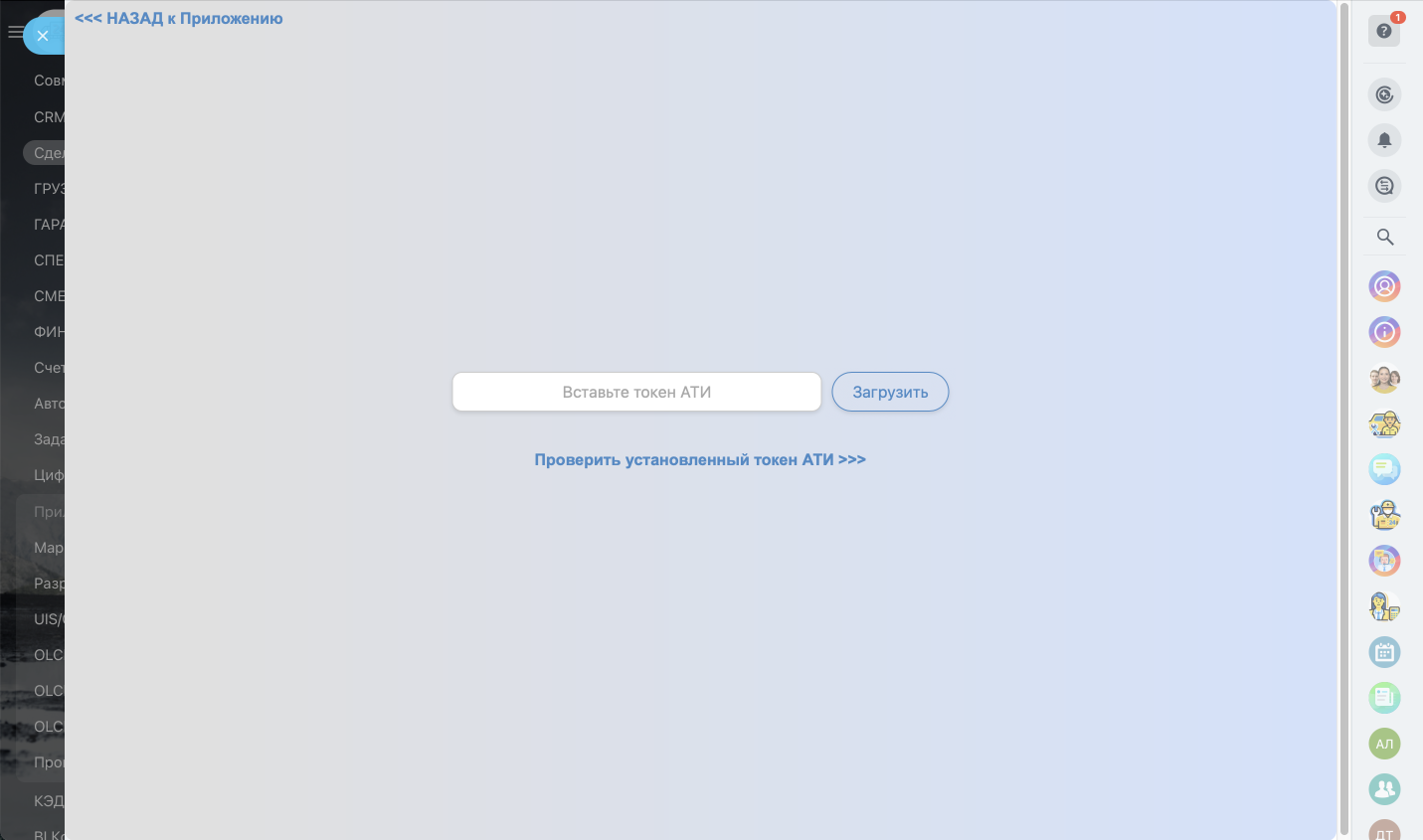 - Перейдите на страницу настроек по кнопке [ Настройки токена АТИ >>> ] и загрузите полученный access_token.