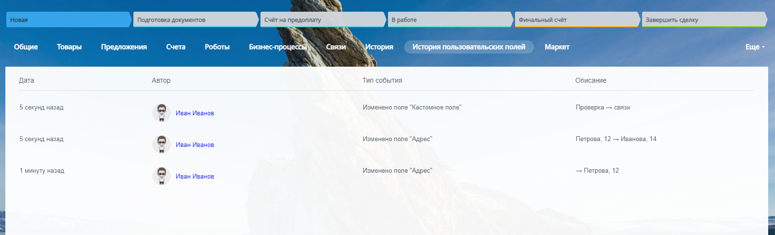 Плюсы: -отдельная вкладка в сделке с историей изменения Минусы: - Нельзя выбрать какие п... ещё