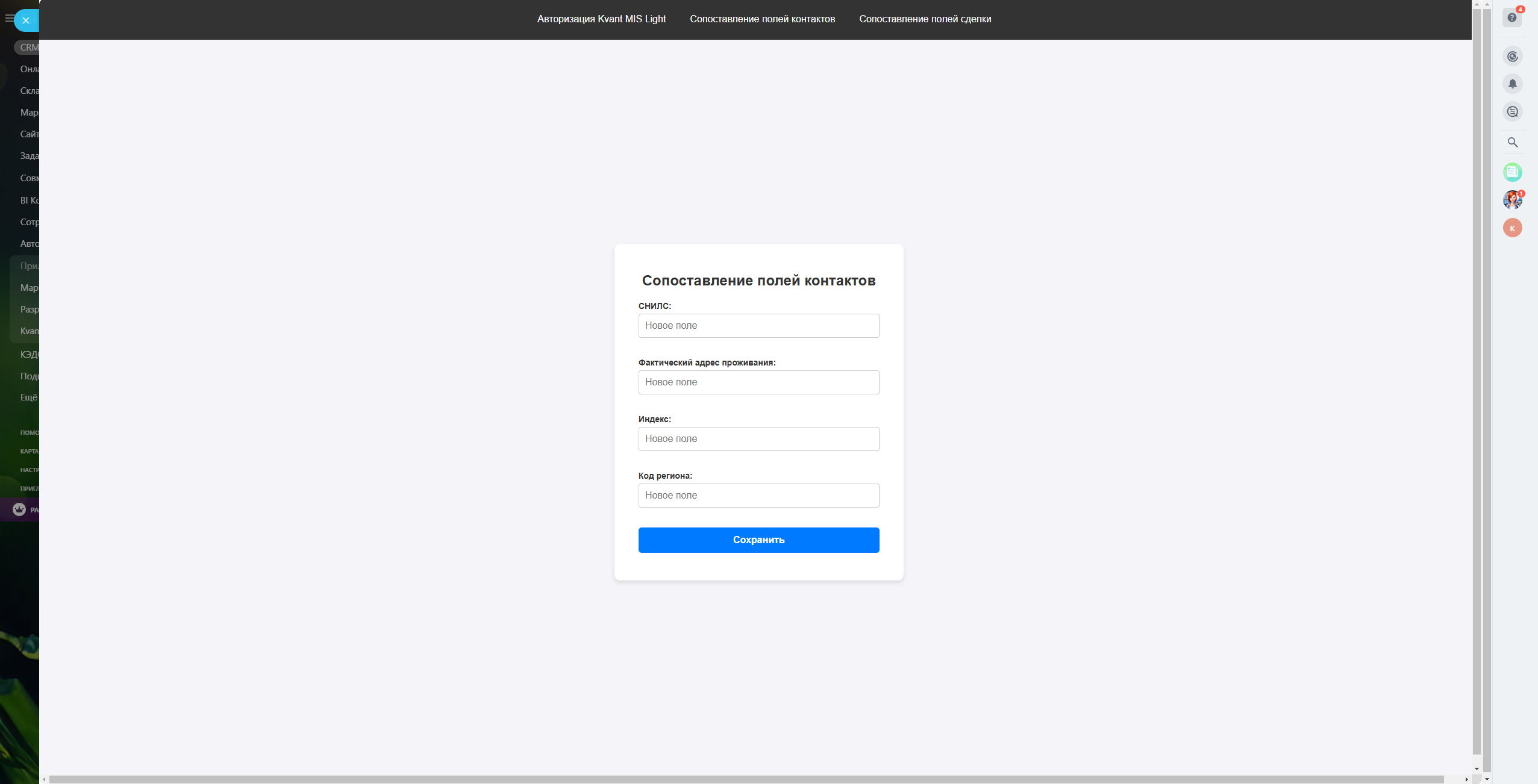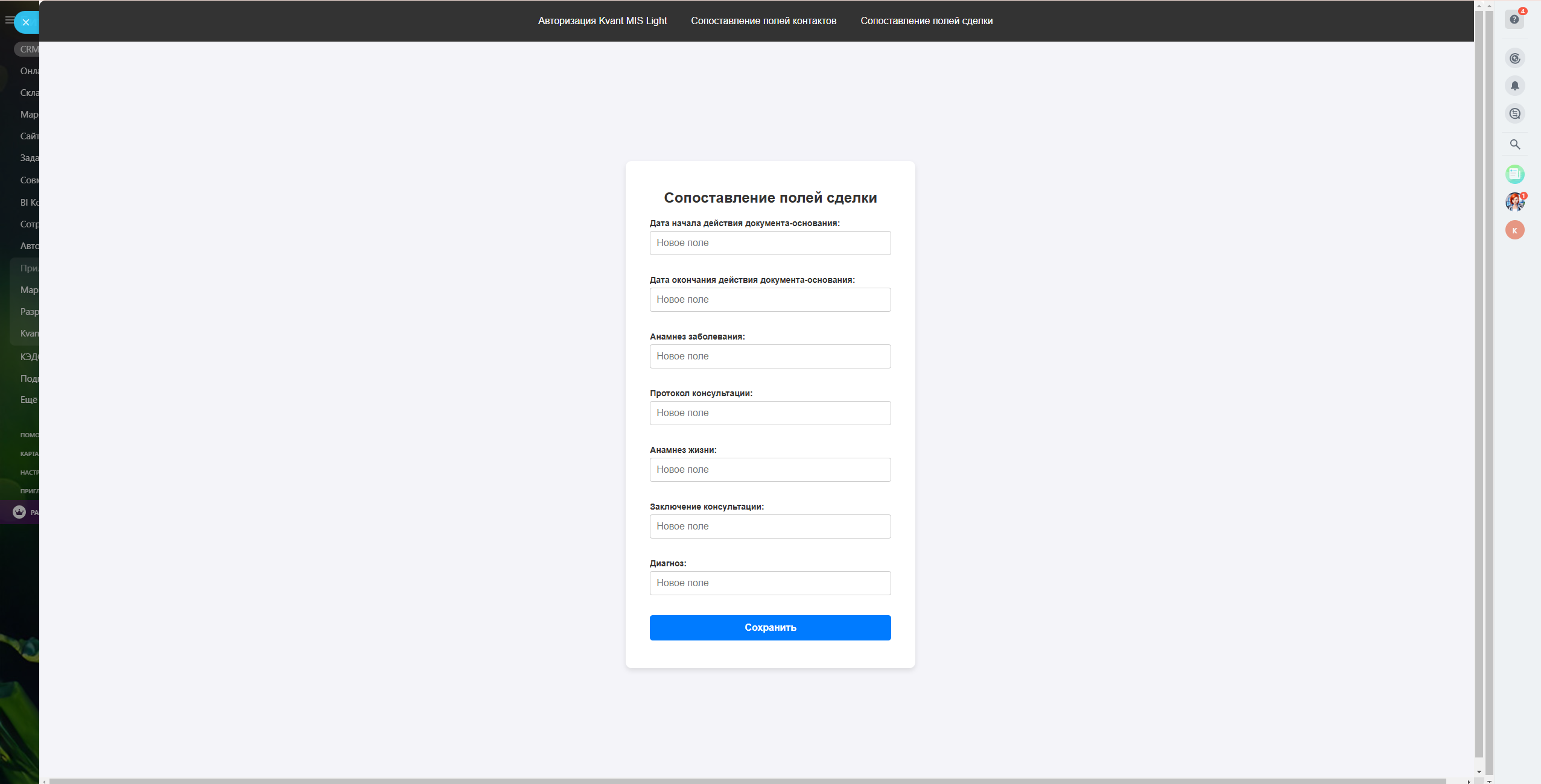 Приложение позволяет отправлять СЭМДы в ЕГИСЗ из Битрикс24 через Квант.МИС Лайт