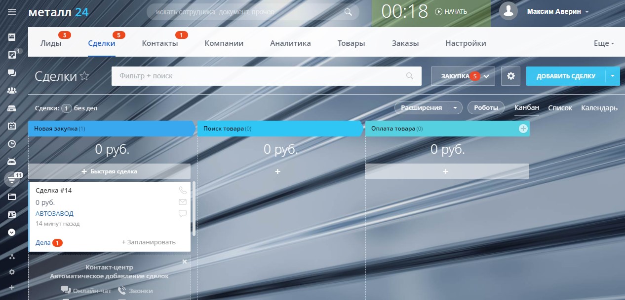 Готовая CRM- система для продажи металлопроката, а также закупки и доставки.
