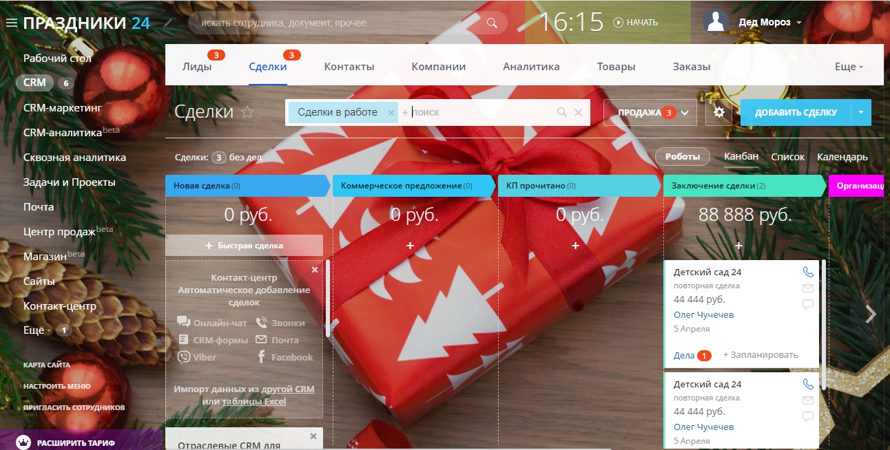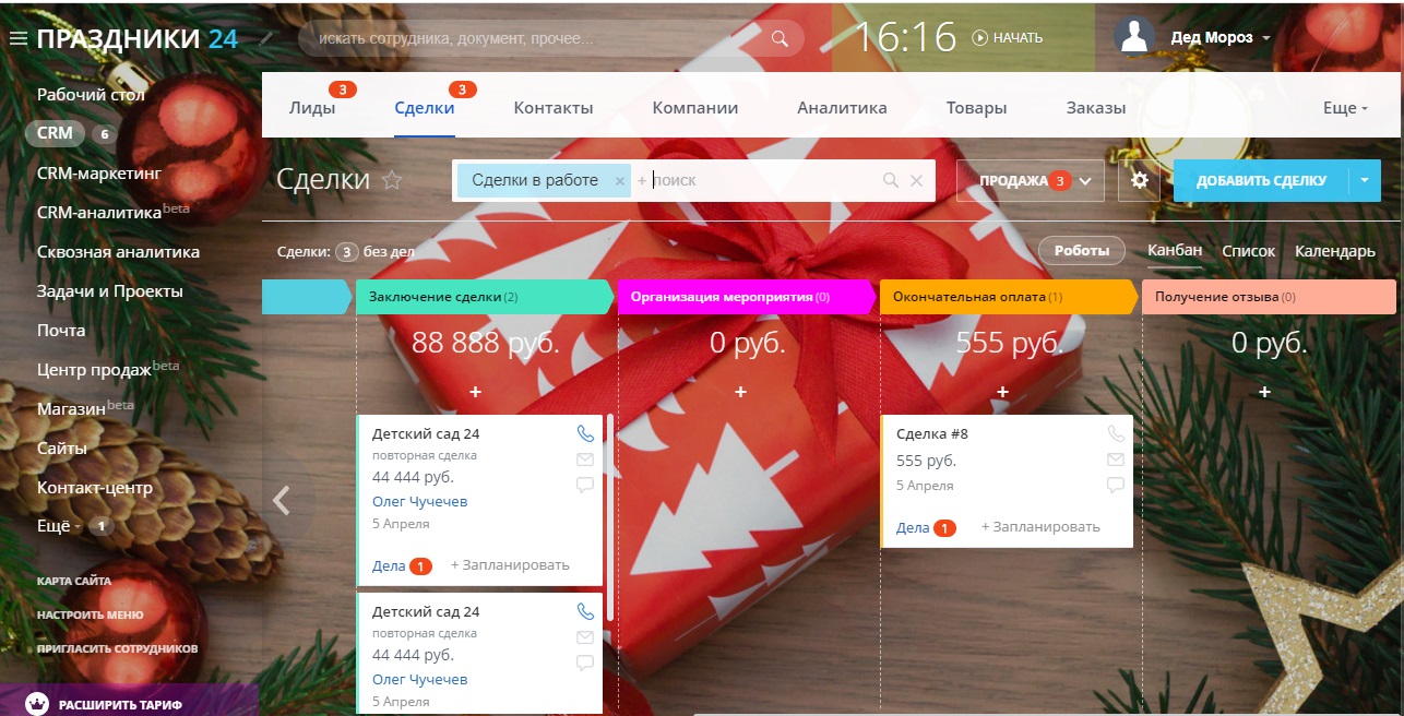 Для лидов и сделок будут автоматизированы регулярные процессы - напоминания, уведомления, создание группы для проектной работы по мероприятию, но только на тарифах Битрикс24 CRM+, Команда или Компания.