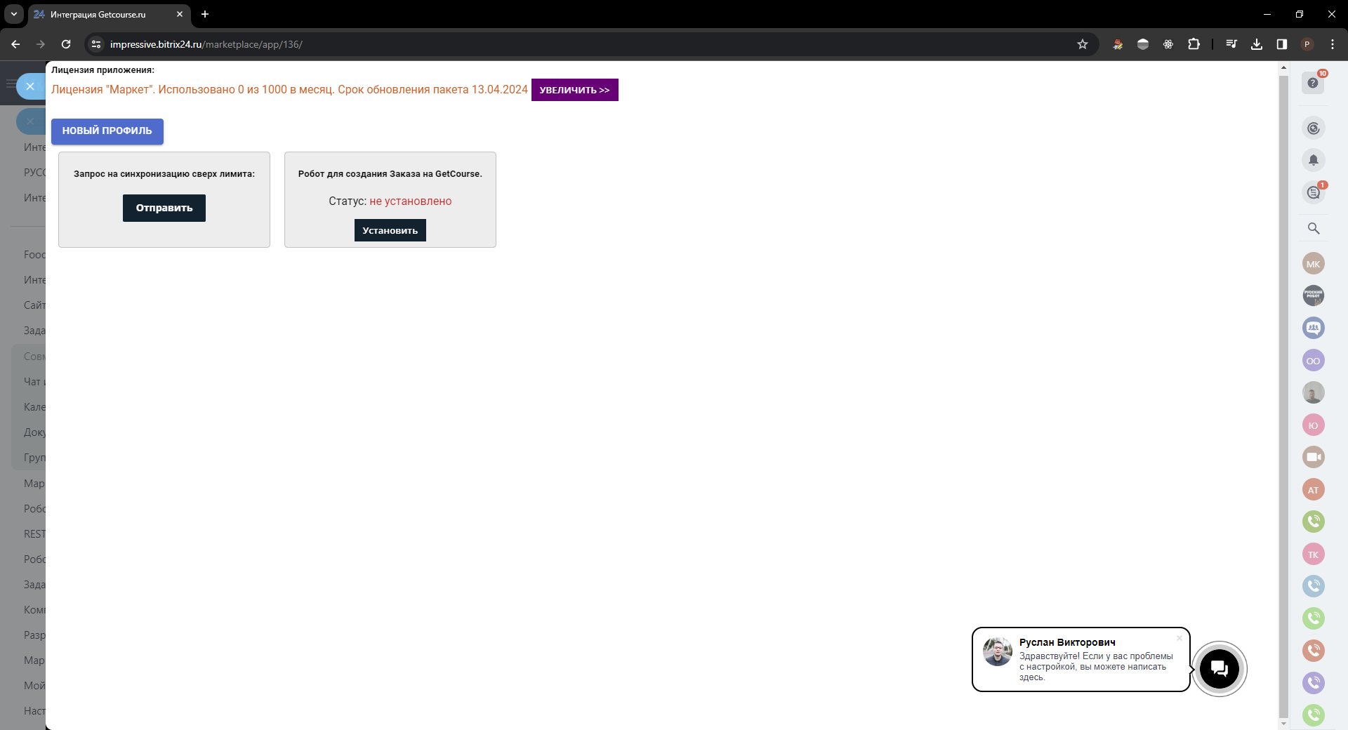 Приложение распространяется по Подписке Битрикс24.Маркет Плюс и включает в себя 1000 объектов обмена, обновление сделки не учитывается в пакете.