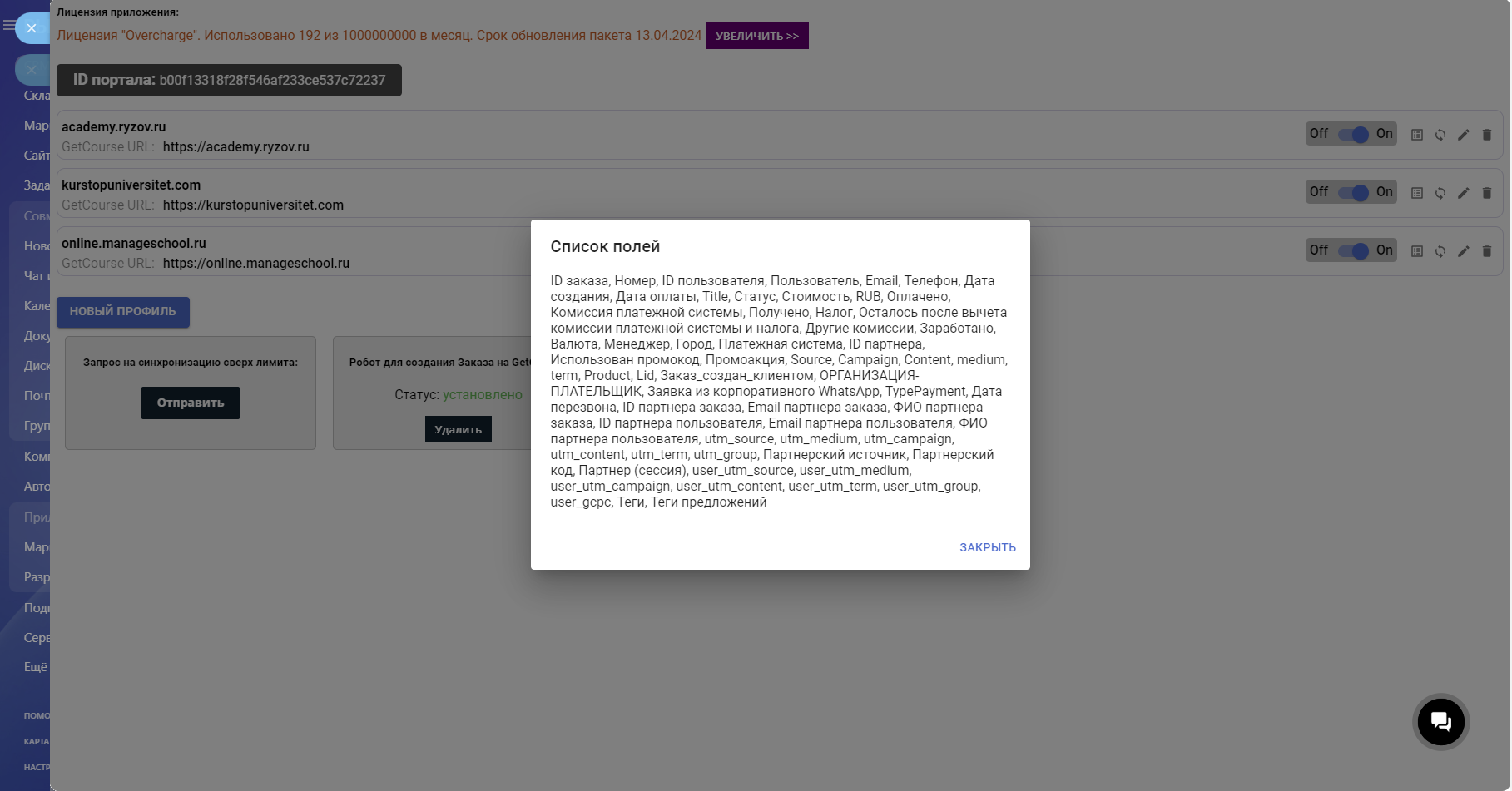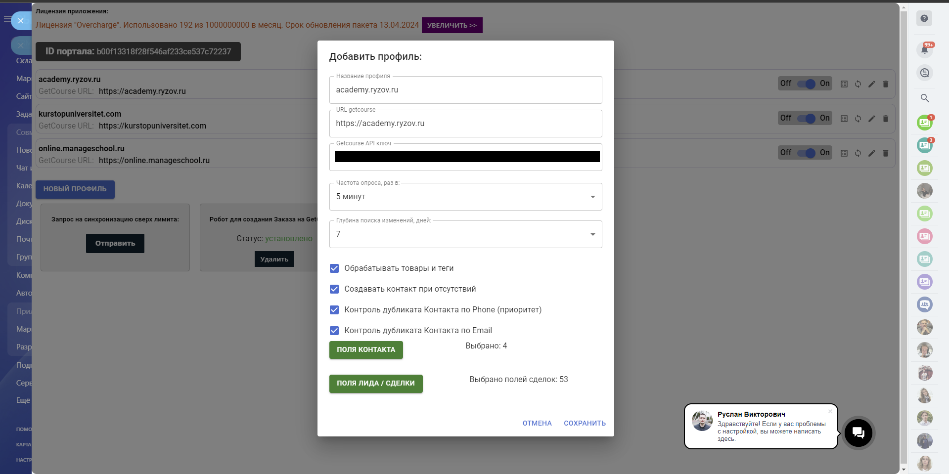 Стандартно можно подключить более 1 аккаунта Getcourse, но рассчитывайте возможности скорости обмена. Обмен с облачным Битрикс24 происходит в рамках ограничений пропускной способности самого Битрикс24. Для коробок скорость обмена неограниченна.