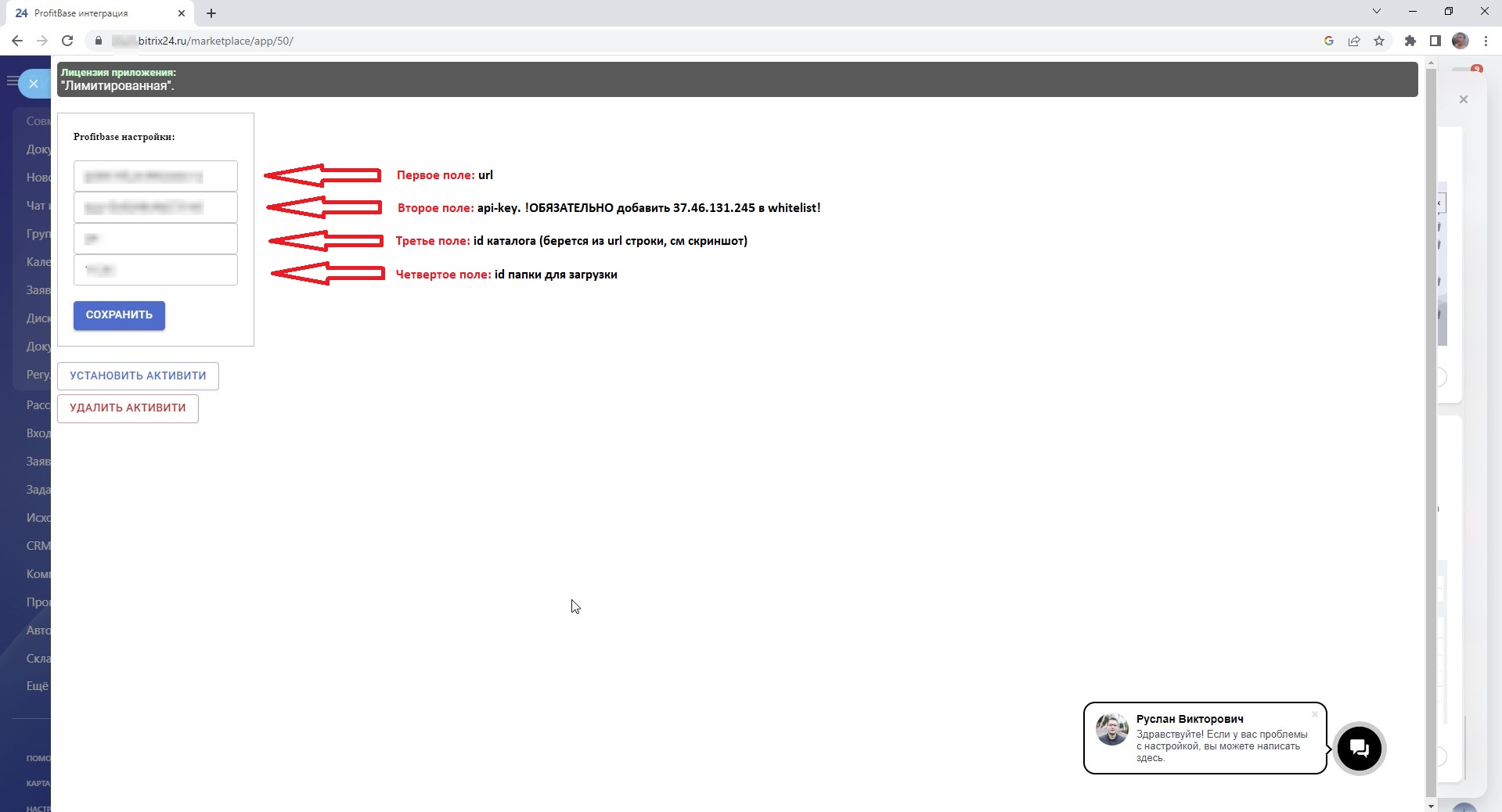 Для работы требуется любое оплаченное приложениe Proftibase и доступ по API.