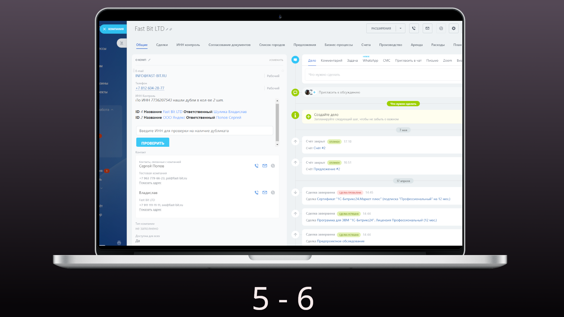Автоматический поиск дубликатов по ИНН. Даже если менеджер забудет проверить ИНН, приложение ИНН Контроль автоматически обнаружит дубликаты и отправит уведомление после добавления или изменения реквизитов в CRM.