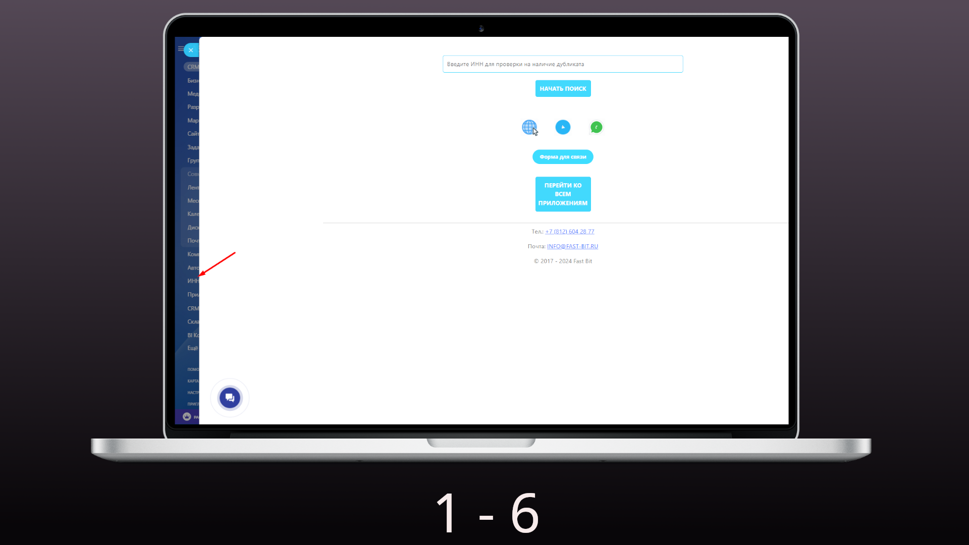 Быстрый поиск. Просто откройте приложение в левом меню и введите ИНН.