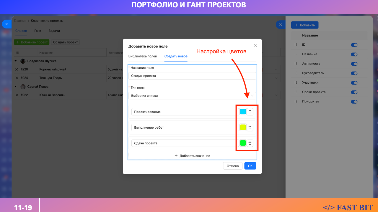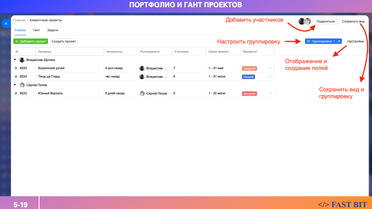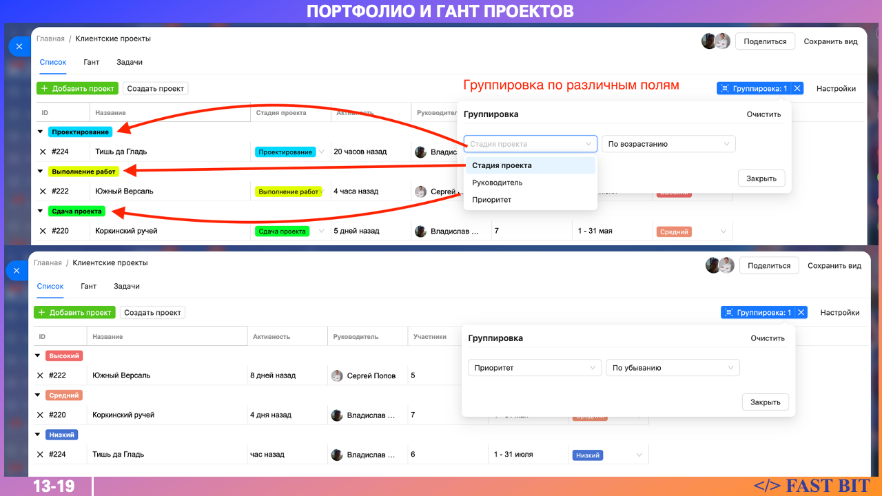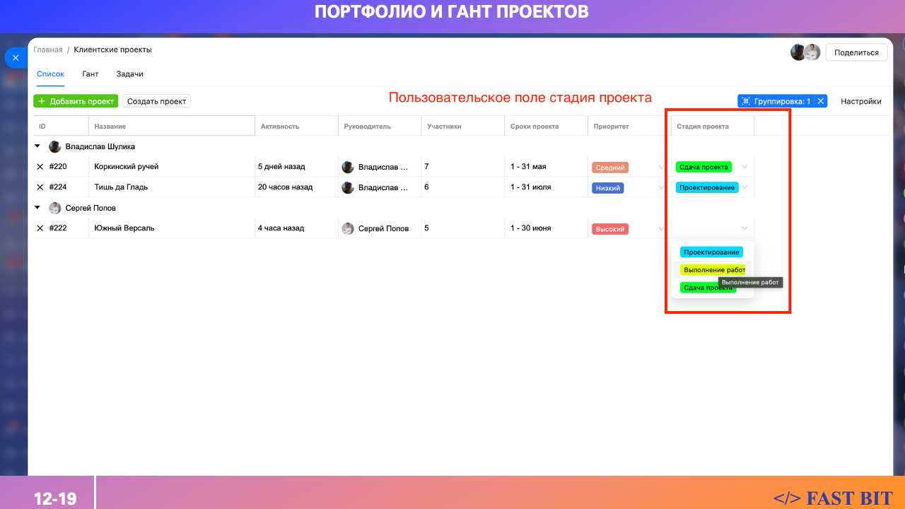 Группировка проектов в портфолио — объединяйте проекты по различным критериям: Стратегия, Мероприятия, Клиенты, Отделы, Объекты, Изделия, Разработки, НИРы, ОКРы и т. д.