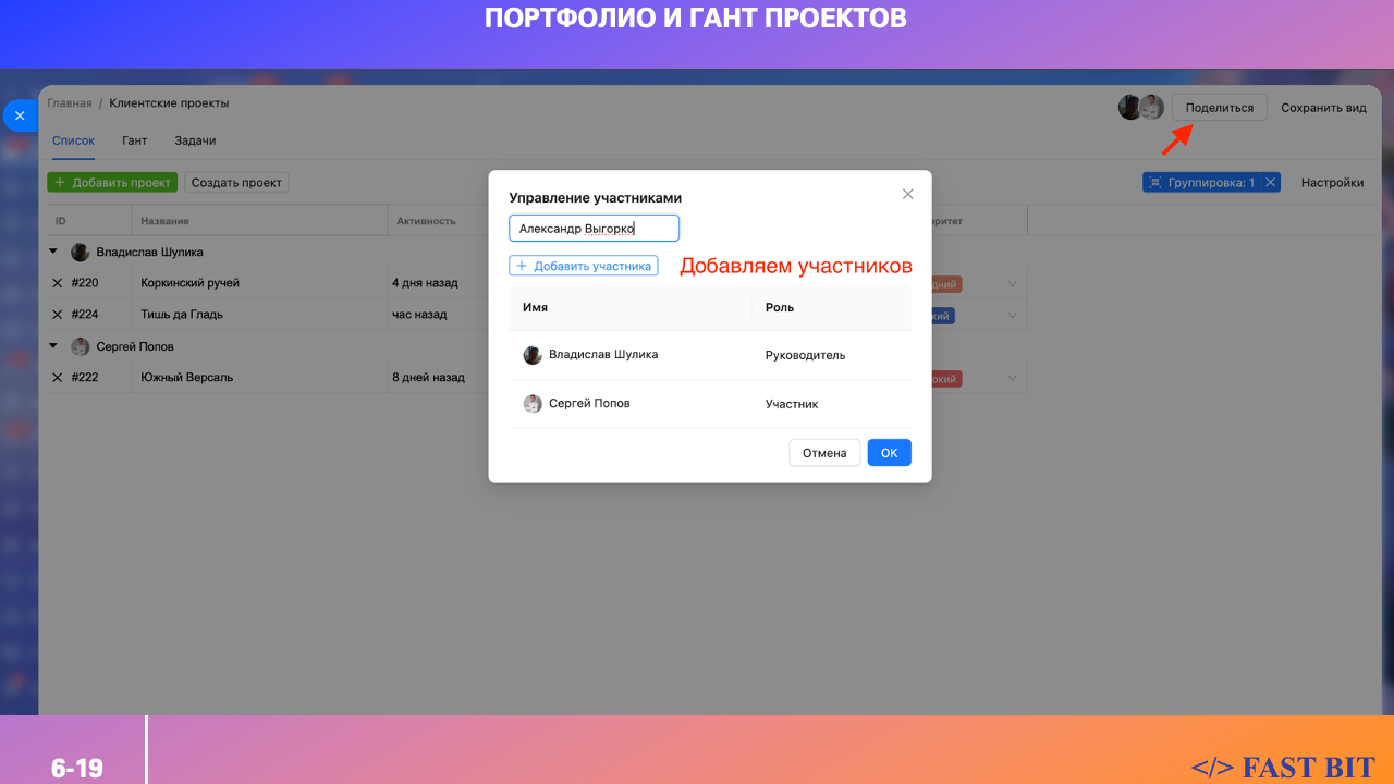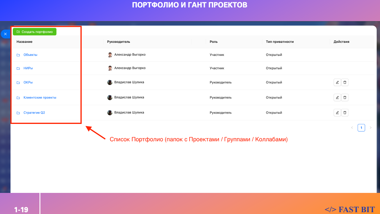 Приглашение участников — добавляйте сотрудников в Портфолио, назначайте ответственных за Портфолио.