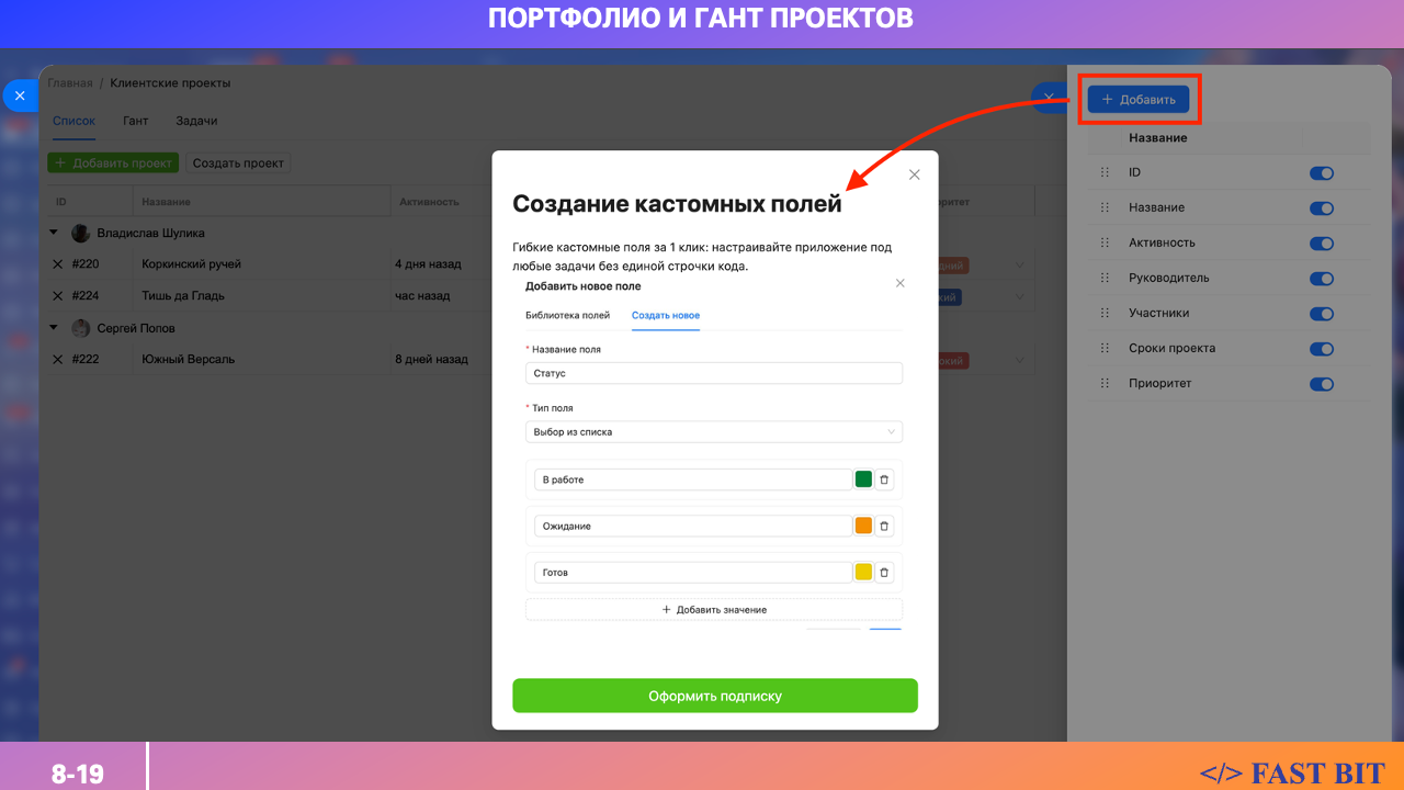 Мониторинг в реальном времени — анализируйте статус Проектов, контролируйте дедлайны и предотвращайте задержки.