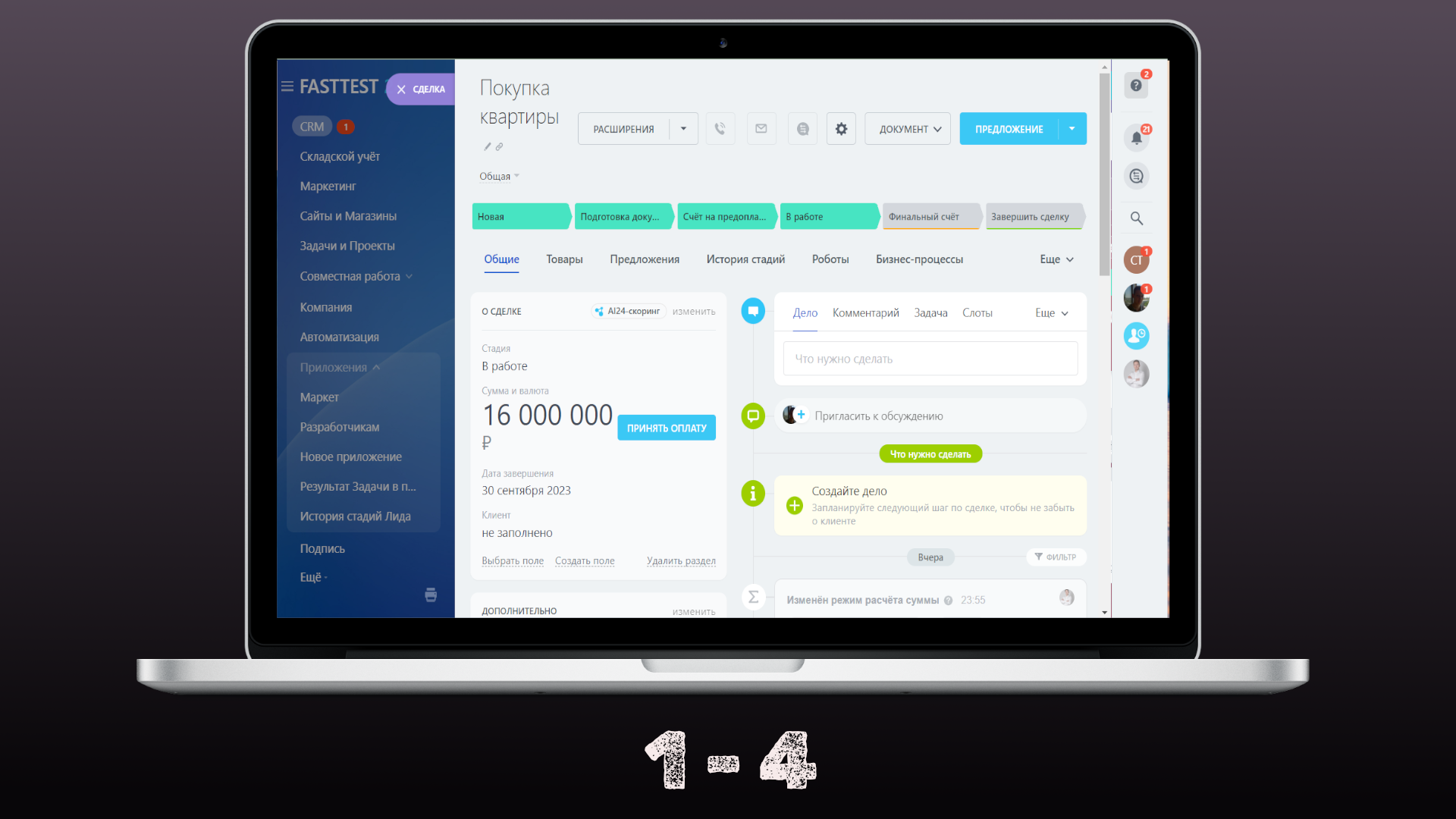 Управление Процессом: Внесение изменений в стадии сделок становится более прозрачным и контролируемым процессом. Назначайте ответственных за изменения и управляйте процессом эффективно.