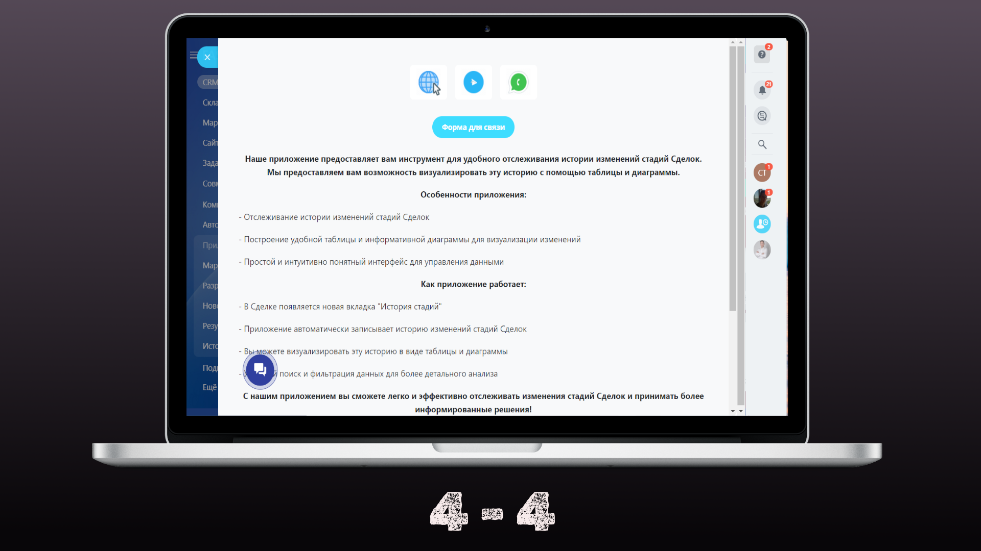 История стадий - это незаменимый инструмент для бизнесов, которые стремятся более эффективно управлять процессами продаж и повышать качество обслуживания клиентов. С нашим приложением вы всегда будете в курсе изменений и сможете принимать обоснованные решения для достижения больших успехов.