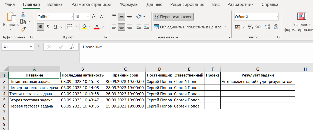 Тем самым мы получаем возможность отображения результата выполнения задачи в списочном представлении задач и что не мало важно, возможность выгрузки этих данных в эксель, для дальнейшего анализа и проработки.