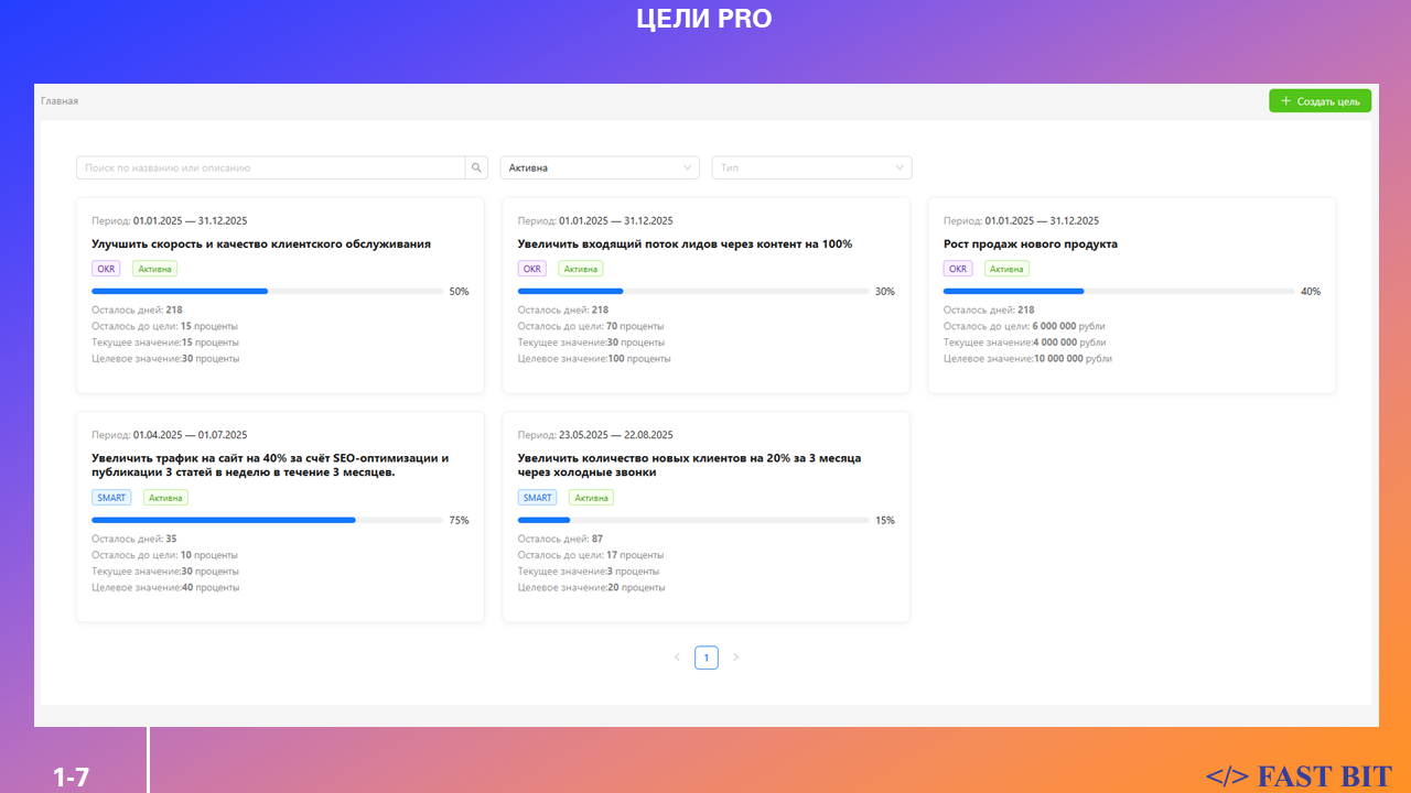 Цели ПРО — поставьте чёткую цель, зафиксируйте путь и увидьте прогресс.