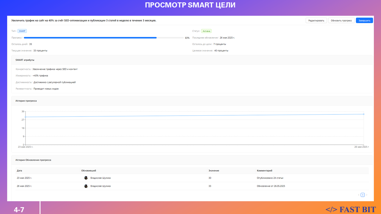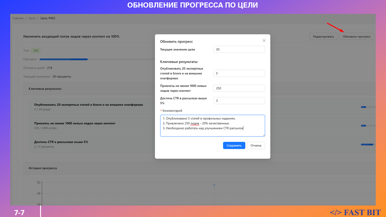 Обновляйте прогресс целей по мере выполнения