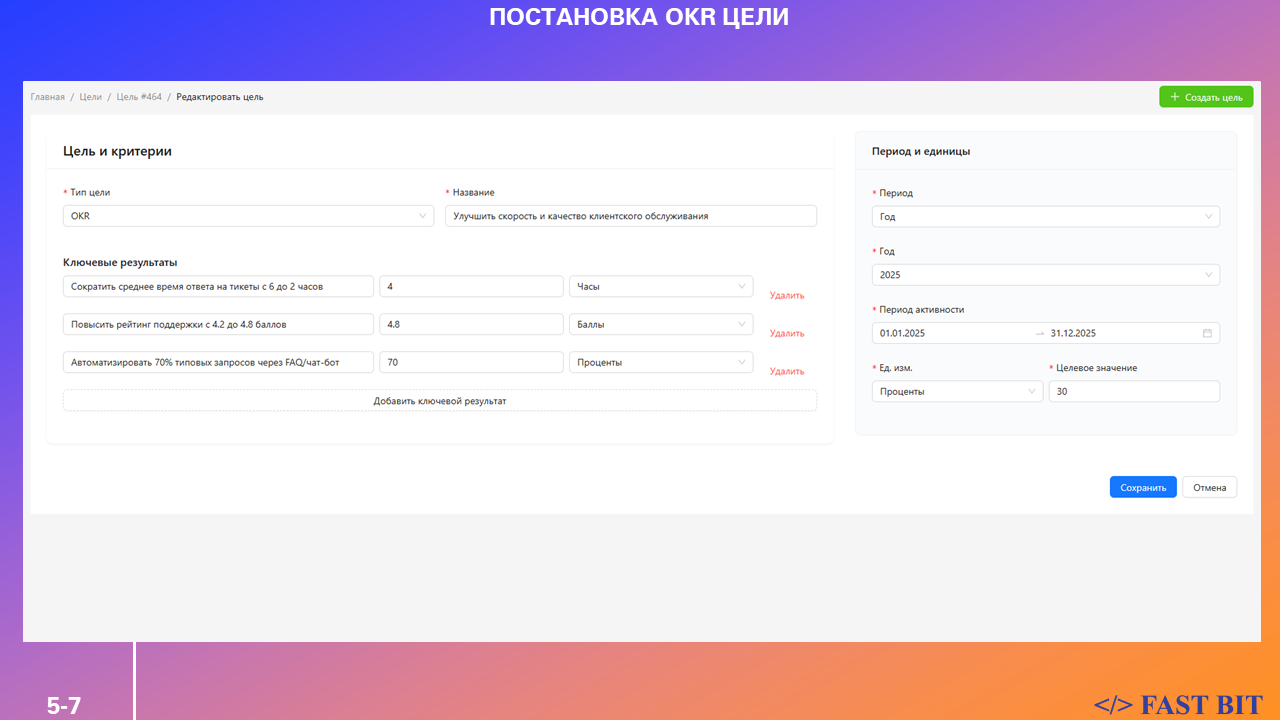 В режиме OKR вы задаёте: