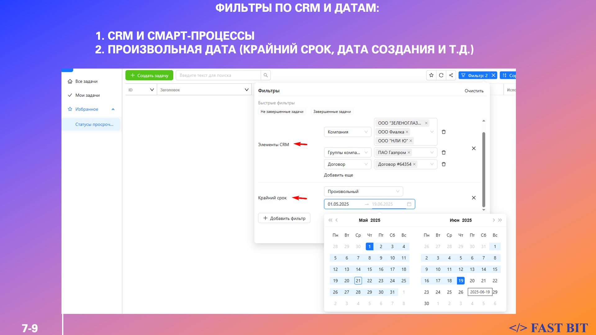в которых будут отображаться все связанные задачи с возможностью фильтрации и редактирования.