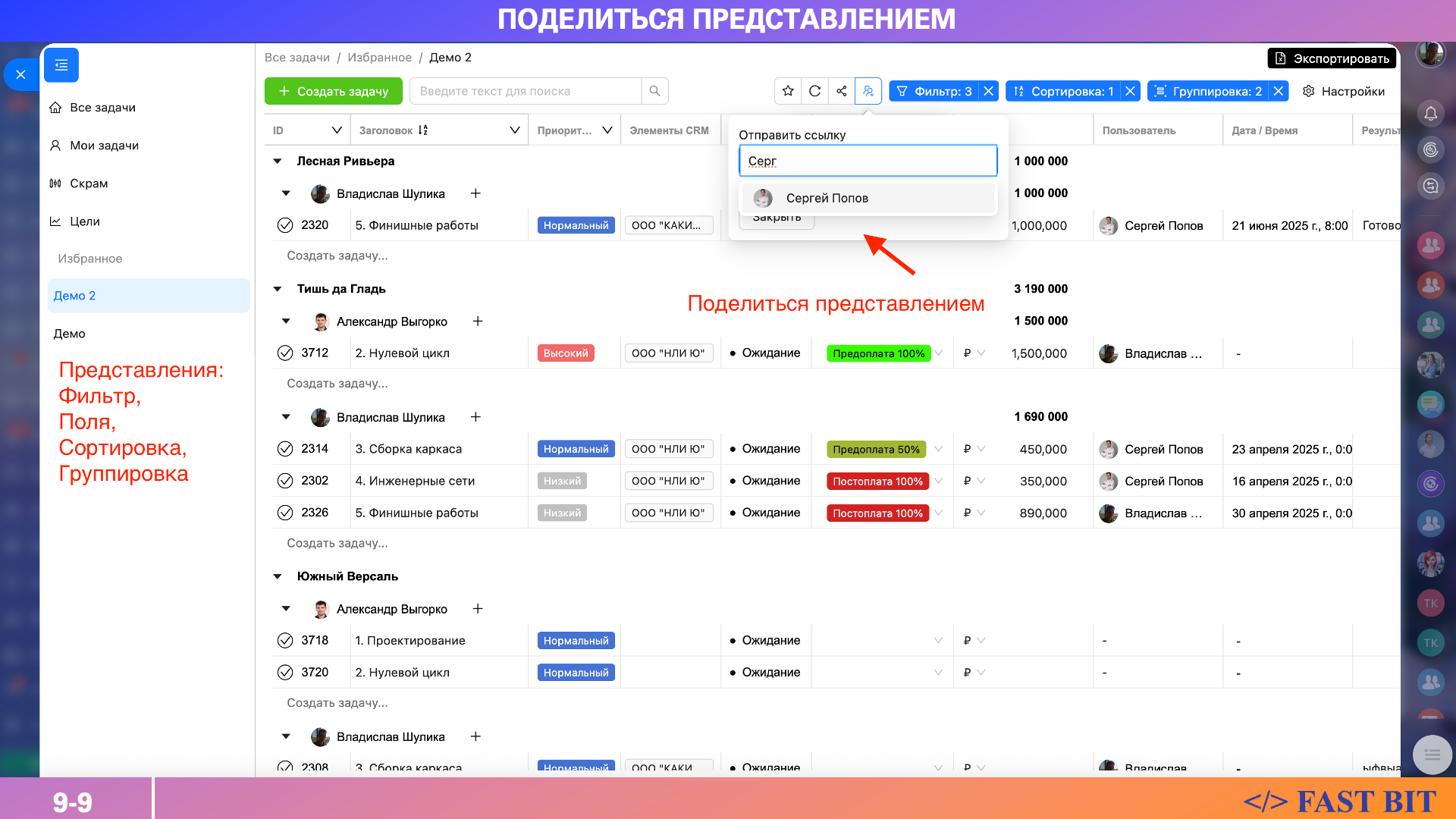 Делитесь представлениями с коллегами (поля, фильтры, сортировки, группировки)