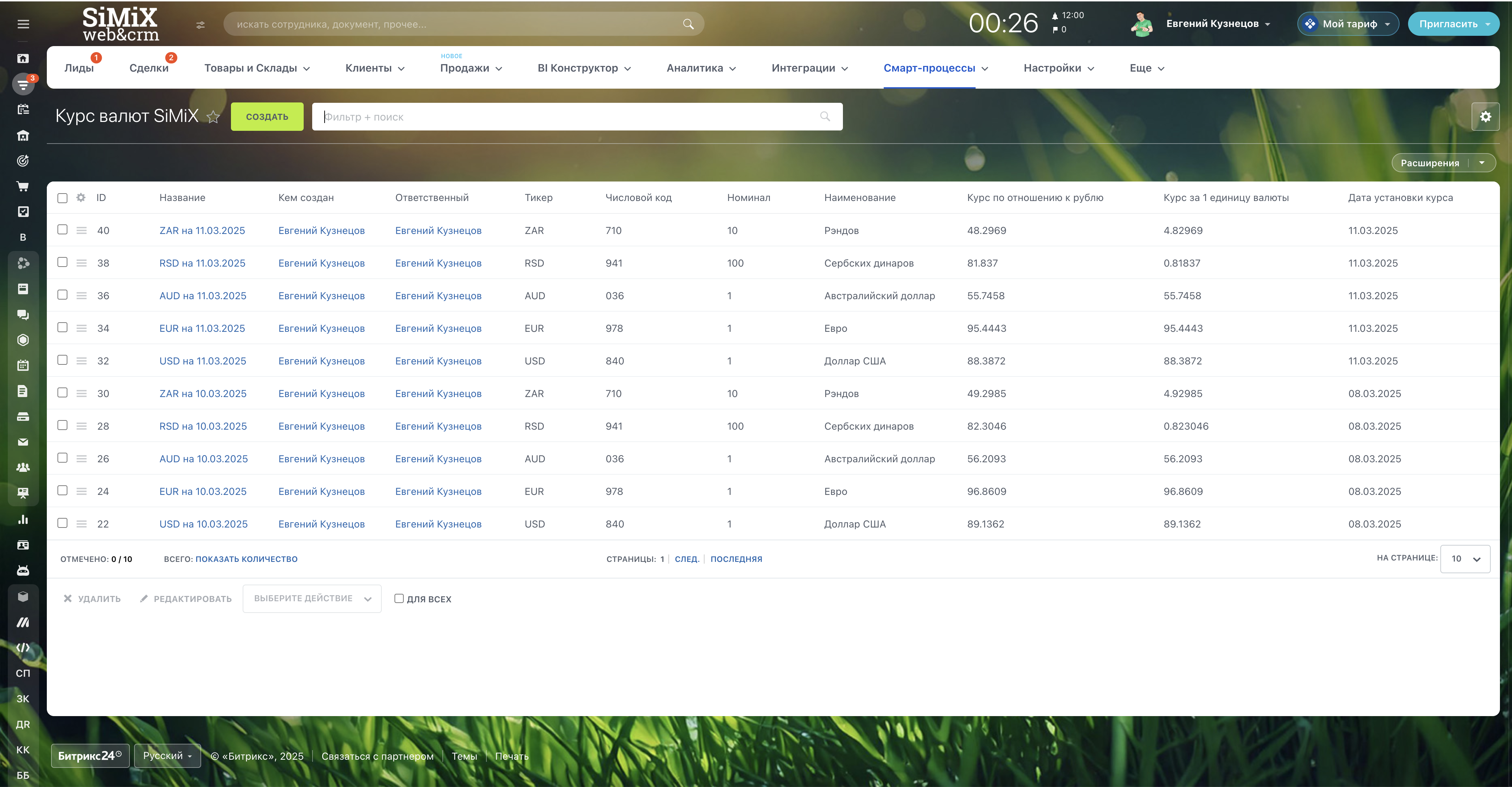 Взгляни на аналитику в Битрикс24 под другим углом) База курсов валют в смарт-процессе. Это открывает возможность создавать Bi-отчеты с привязкой к дате курса и расчетами валютных значений.