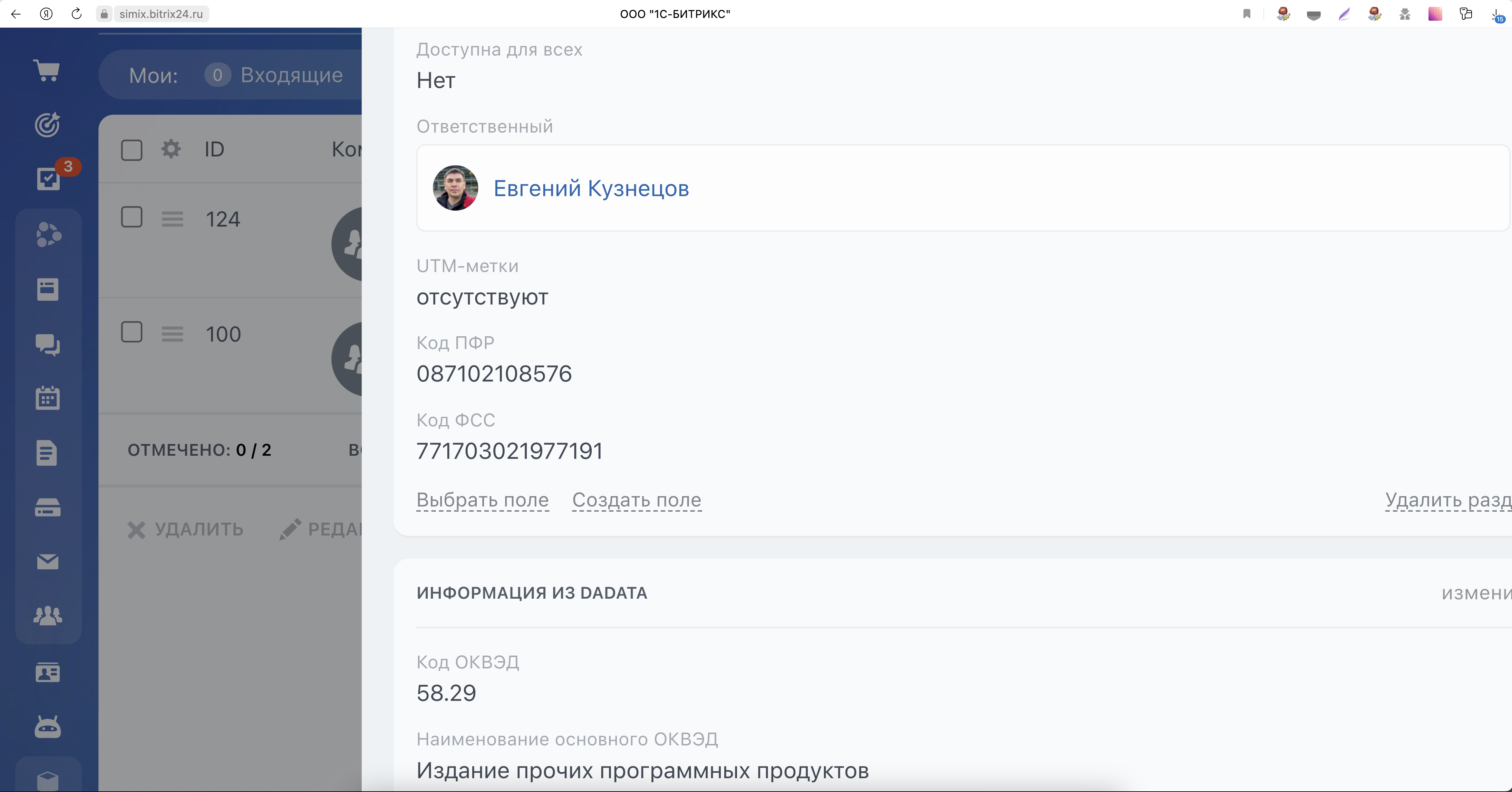 Поиск по ИНН в базе Битрикс24 (Добавление данных из DaData)