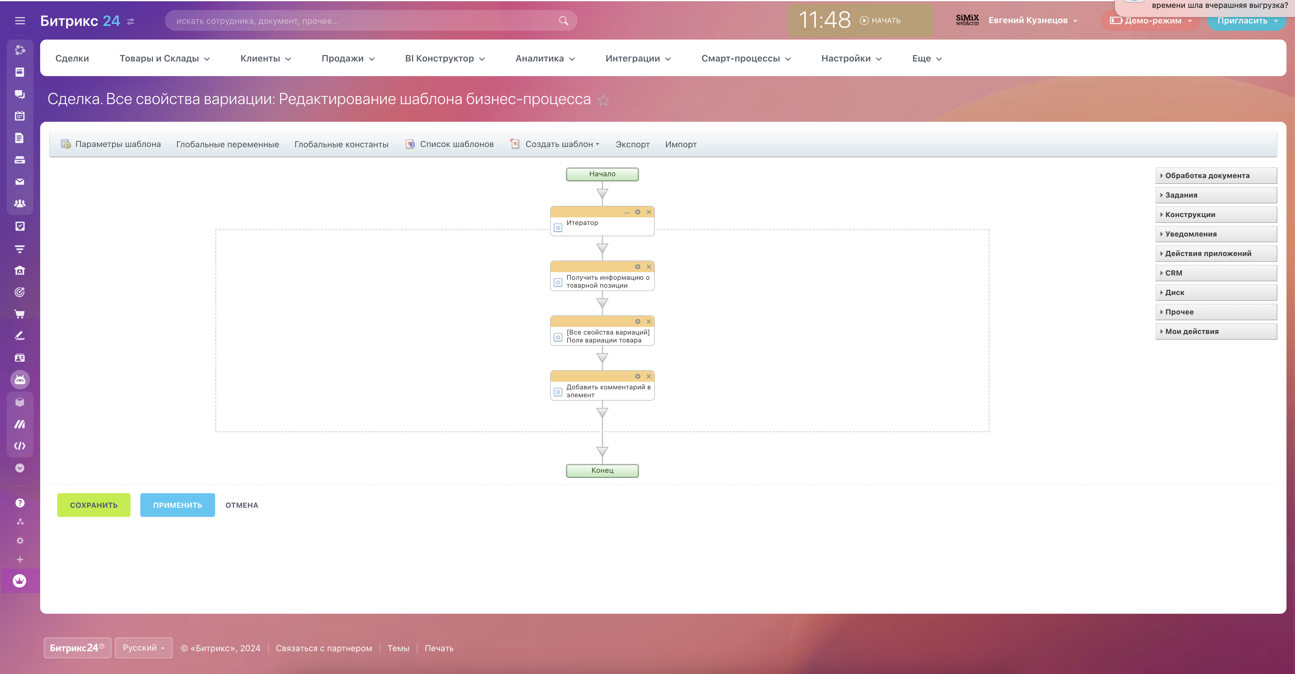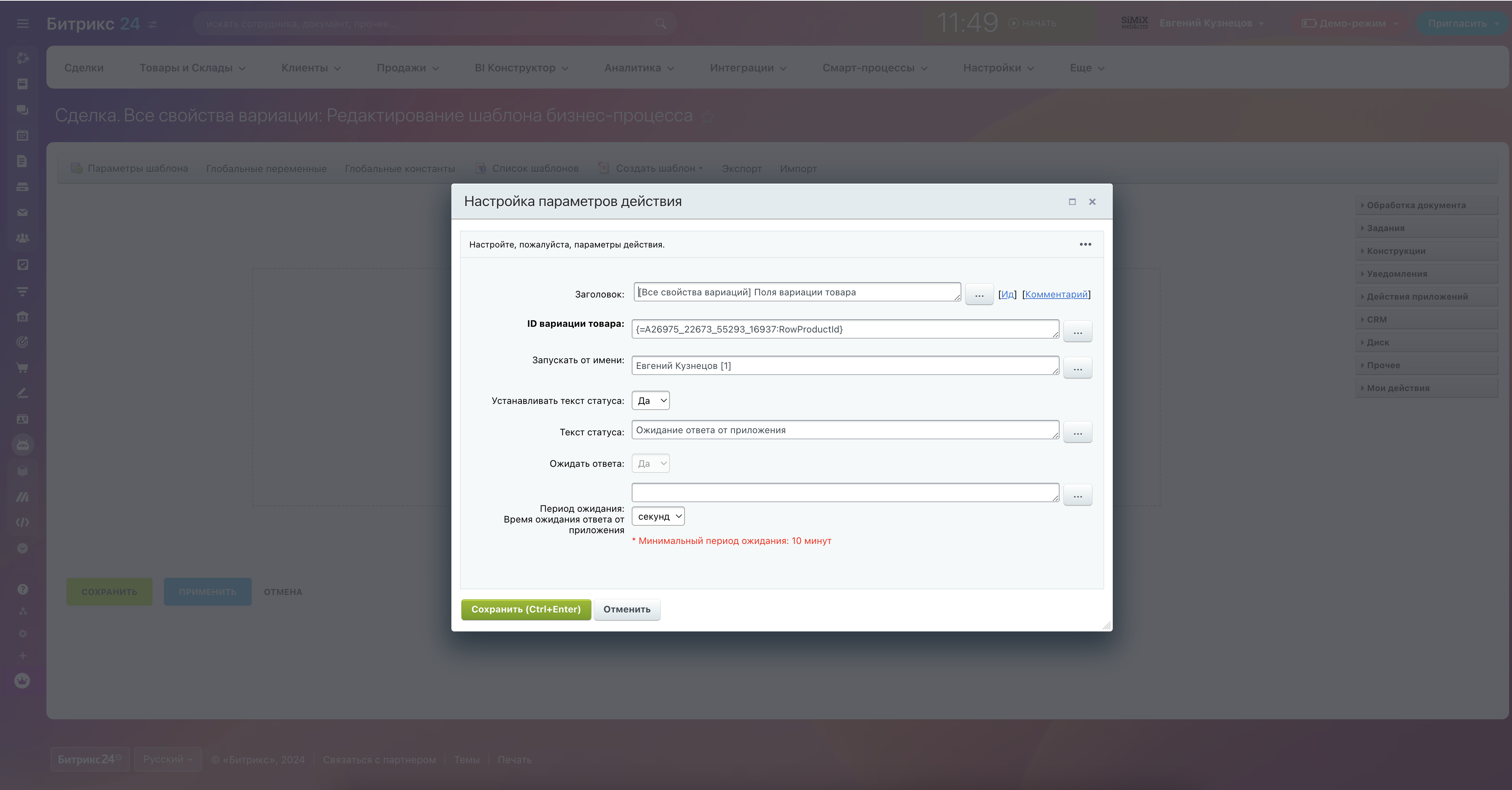 1. Получение любого свойства вариаций в результаты БП (подстановка значений свойств в поля сделки и тд)