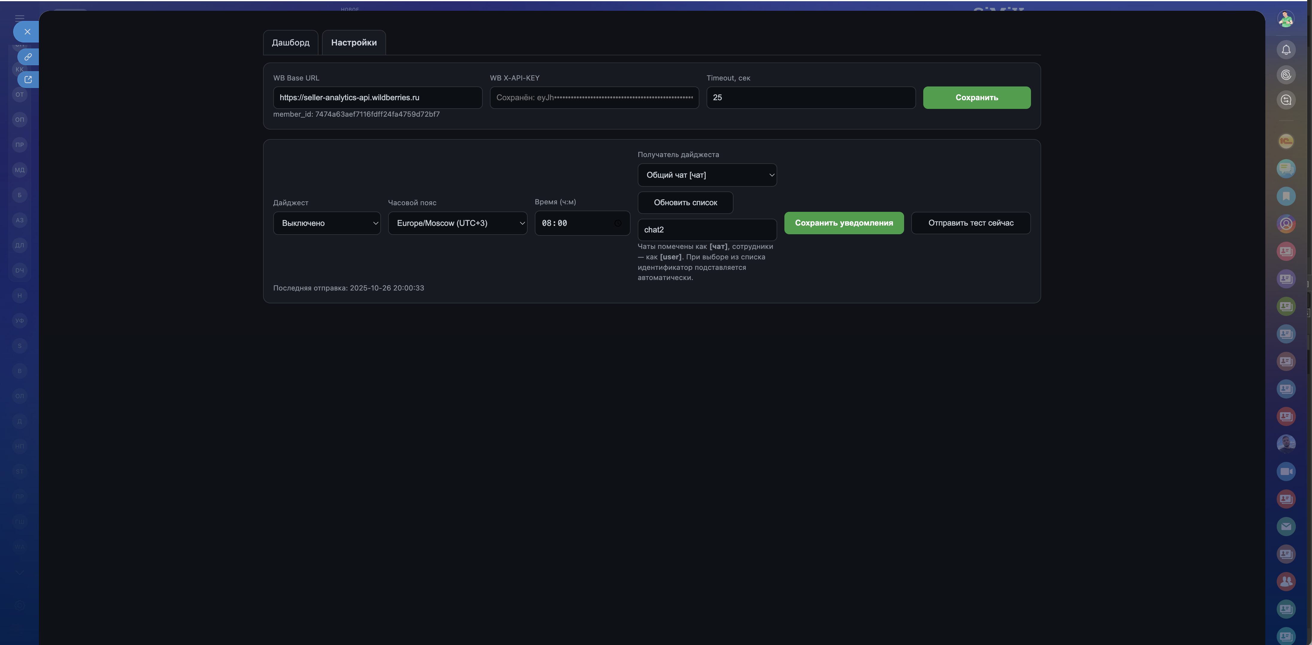 Руководителям, маркетологам, аналитикам и владельцам брендов на Wildberries, которые хотят видеть ключевые цифры и автоматические подсказки там, где команда уже работает — в Битрикс24.