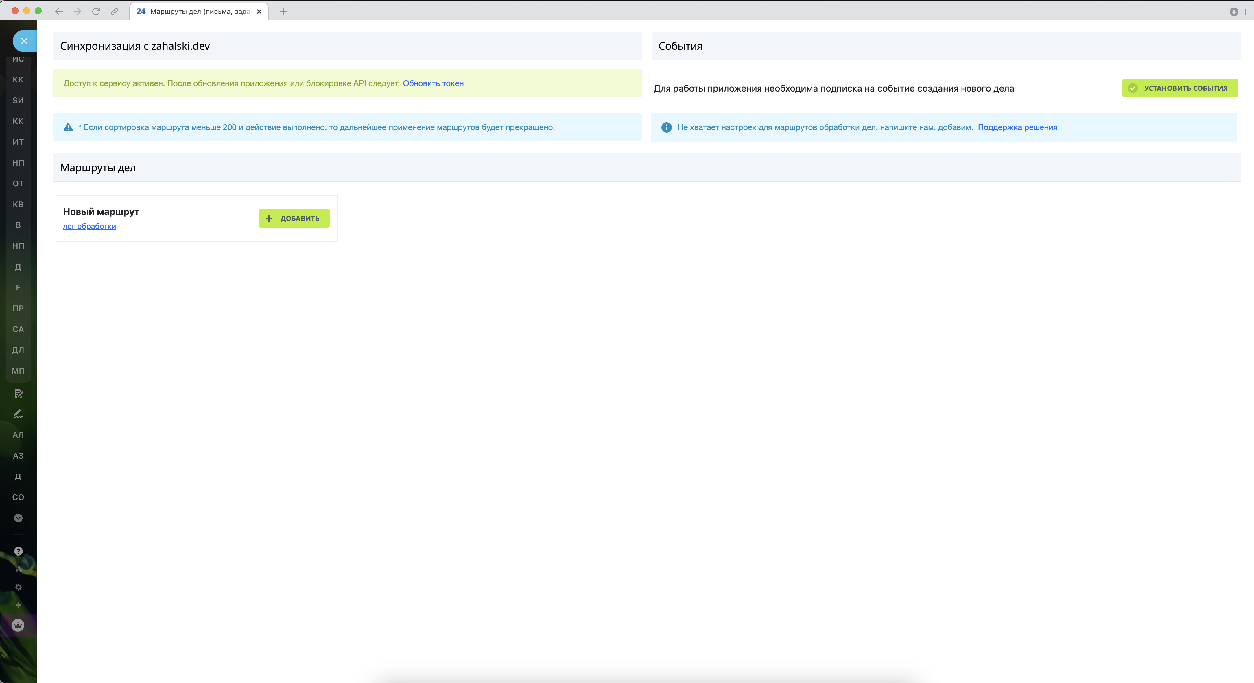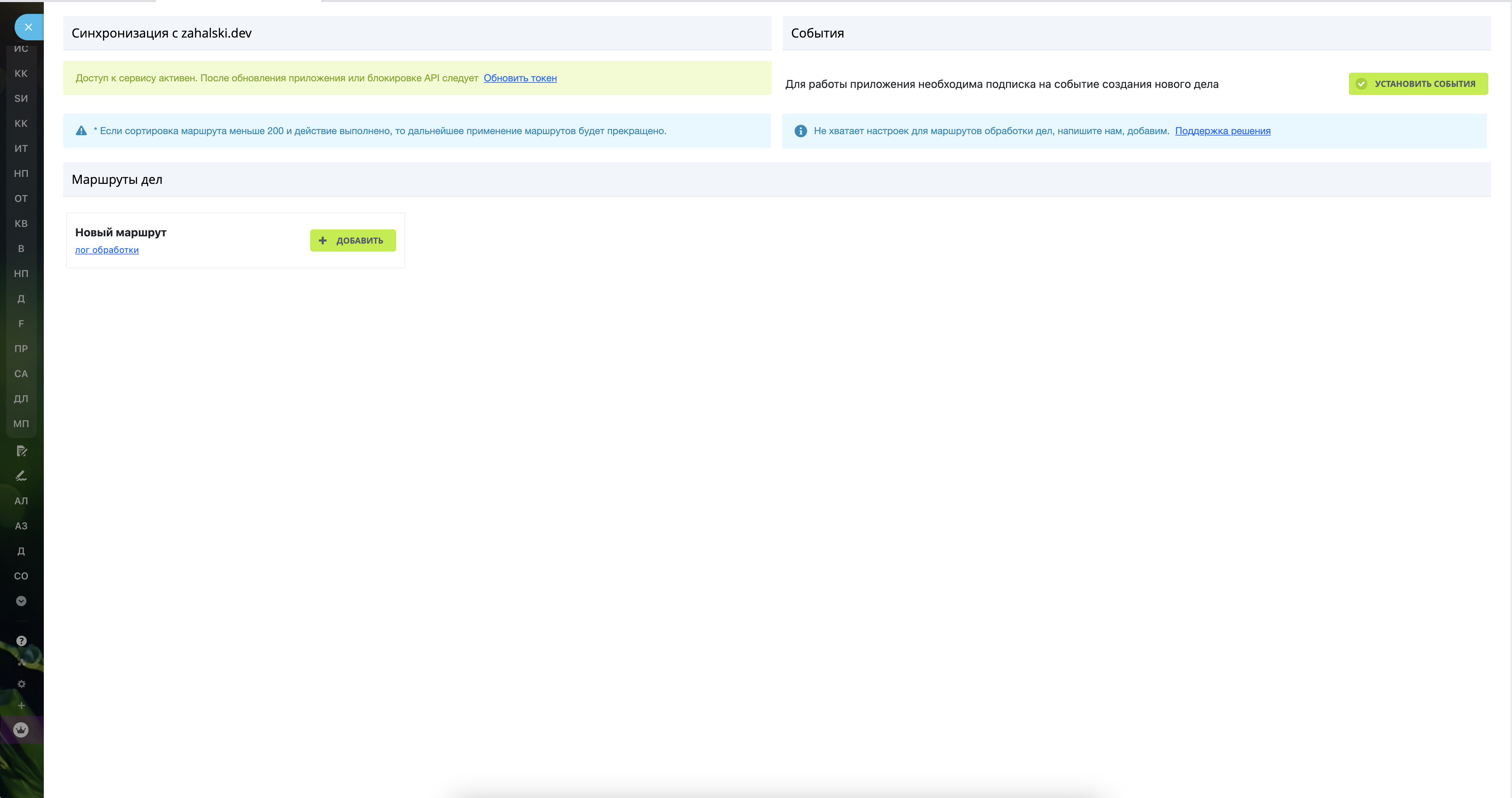 Приложение позволяет строить неограниченное число маршрутов для передачи дел между элементами CRM и элементами смарт процессов.