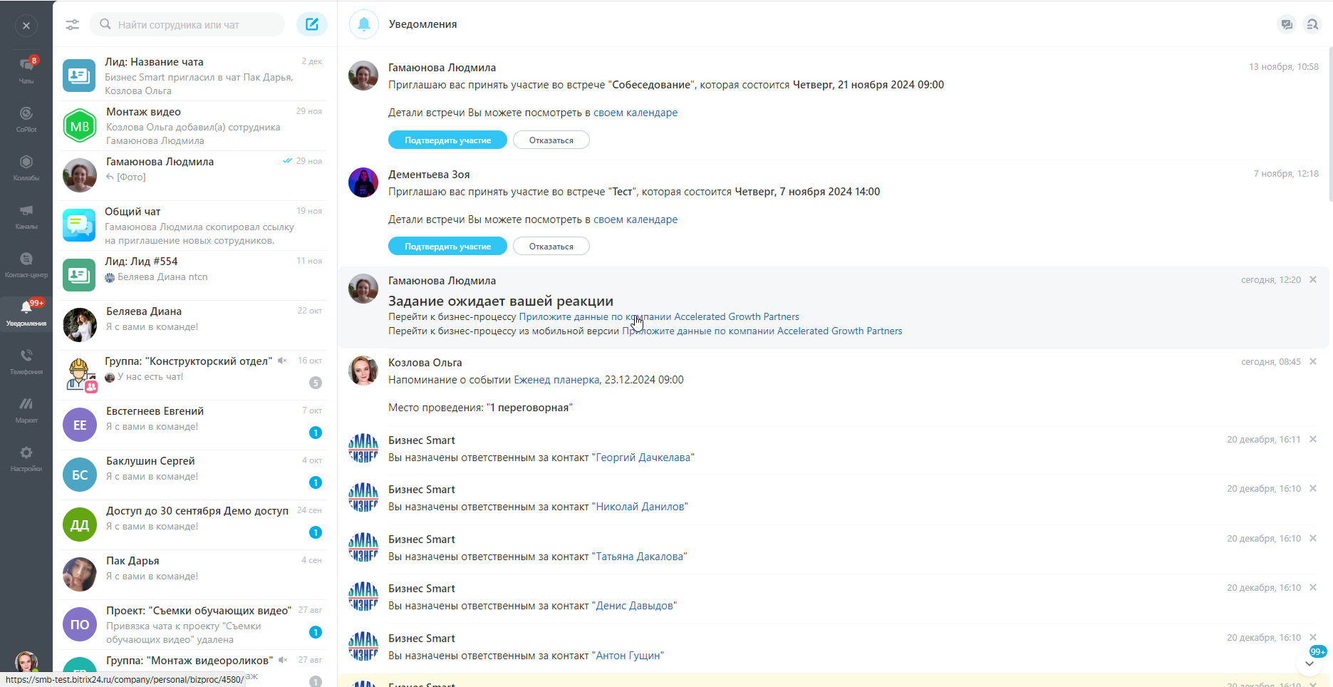 Задание доступно для выполнения только ответственному за него сотруднику. Администратор может настроить уведомления ответственному, чтобы он не забыл выполнить задания.