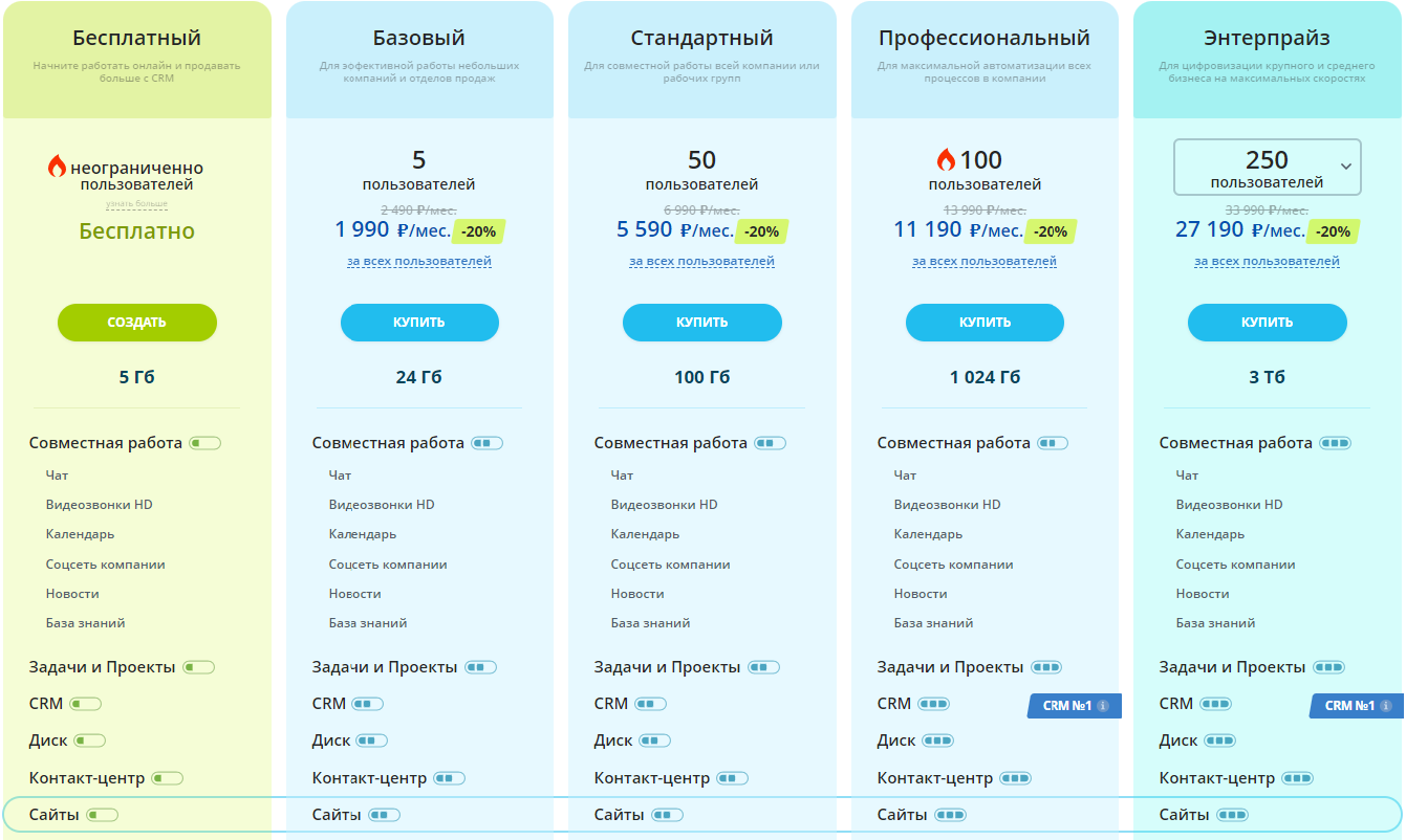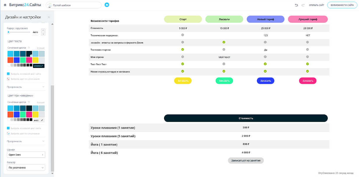 тарифов на сайте