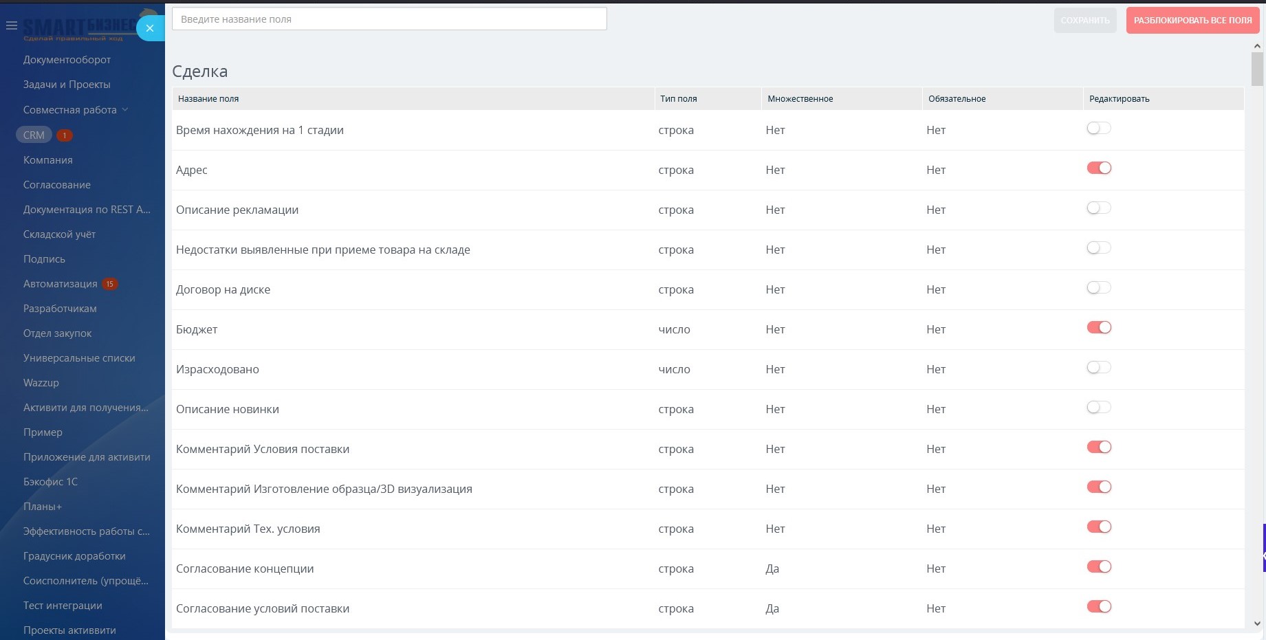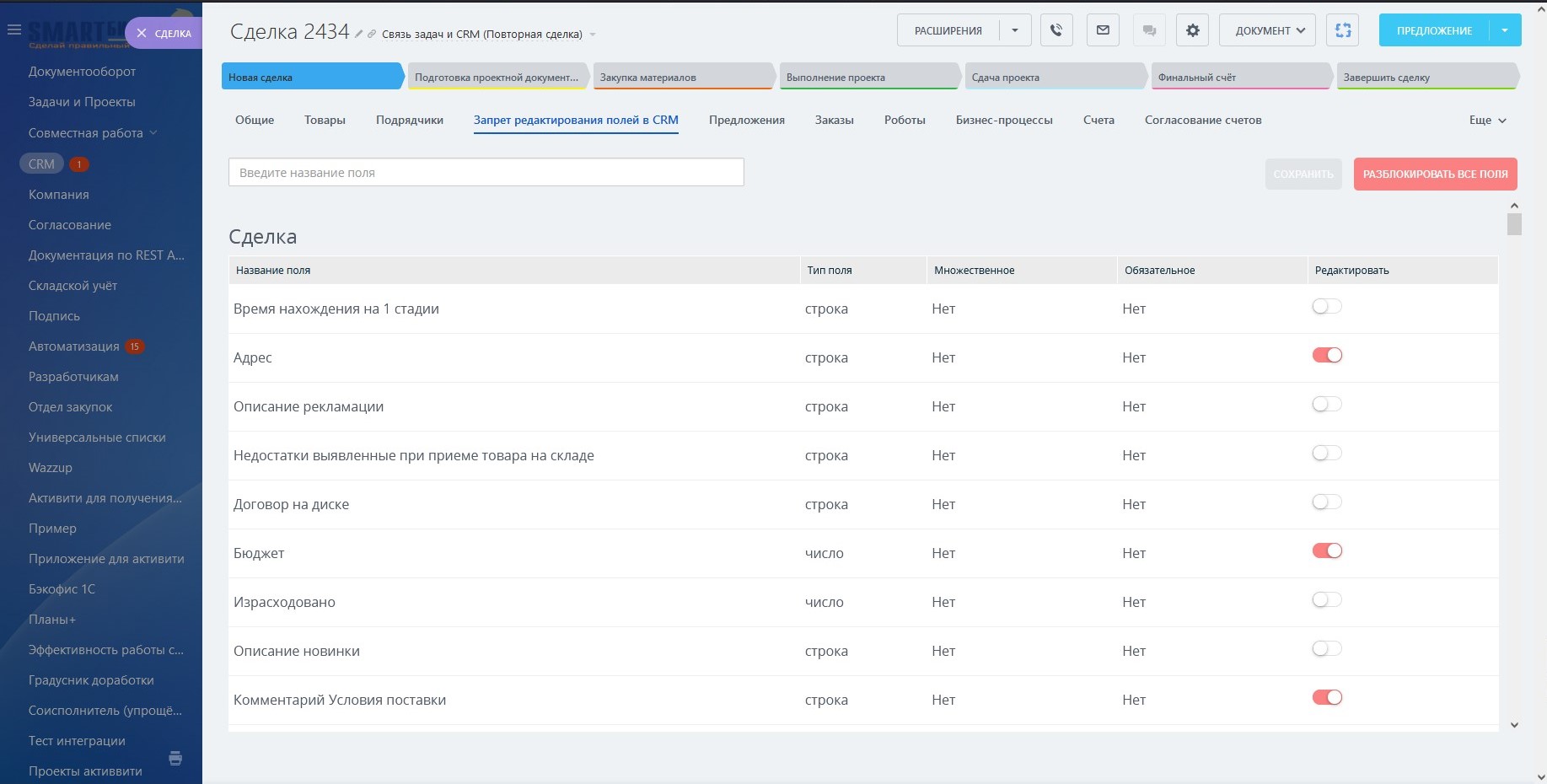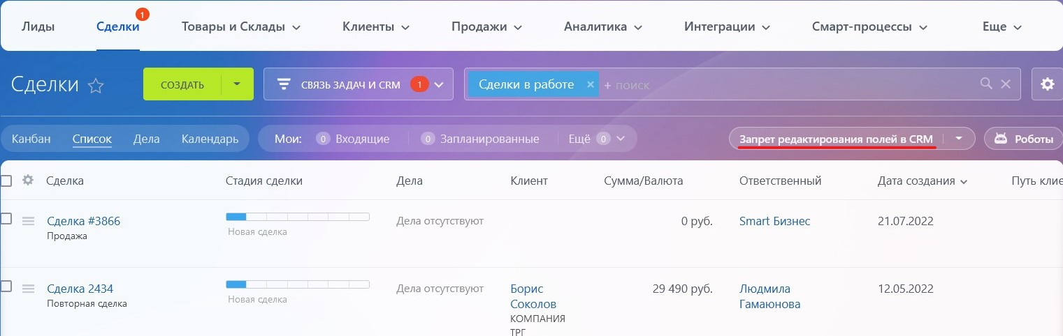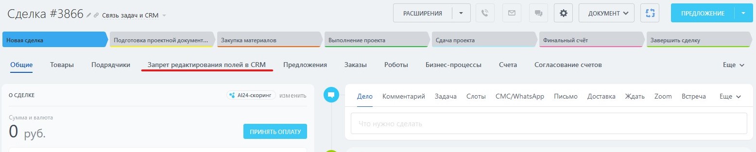 Запрет редактирования полей в CRM