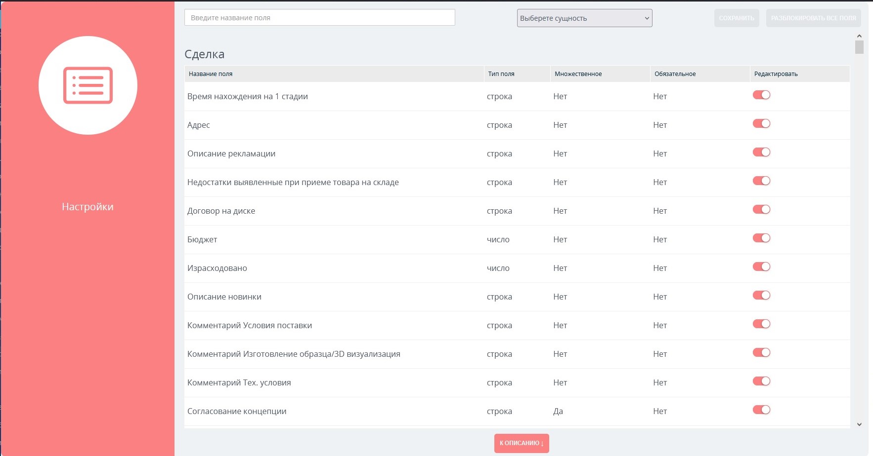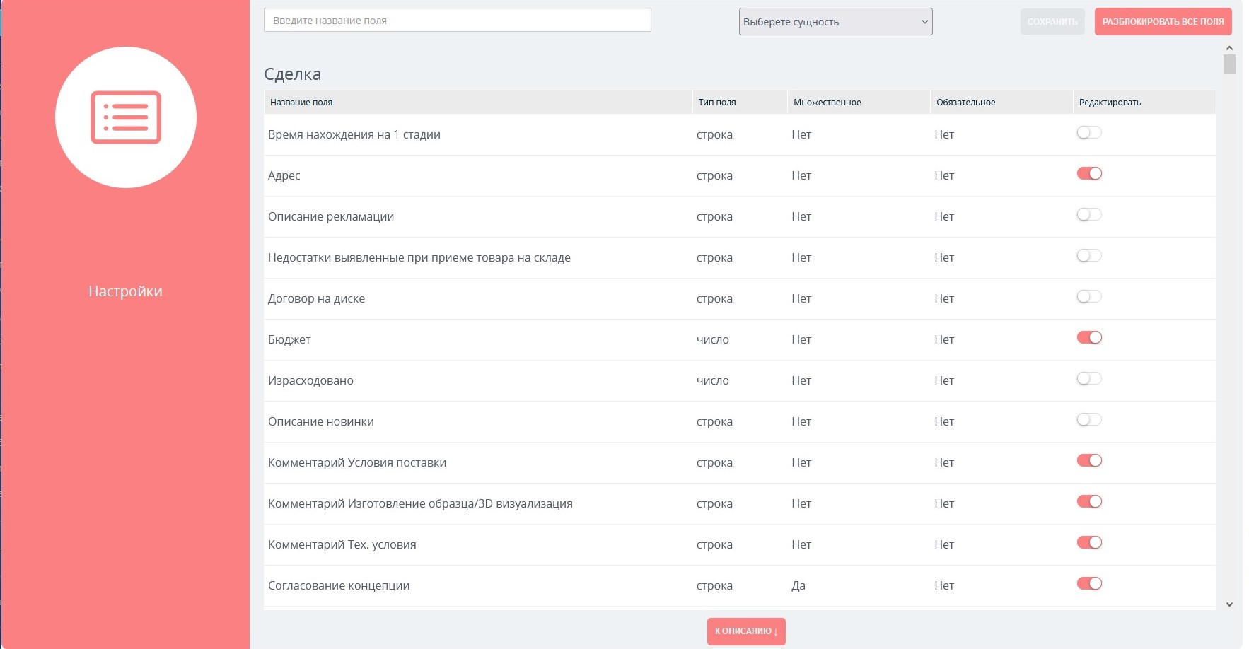 4. Можете настроить поля из любого раздела (там, где удобно): в приложении, в сделке, воронке продаж