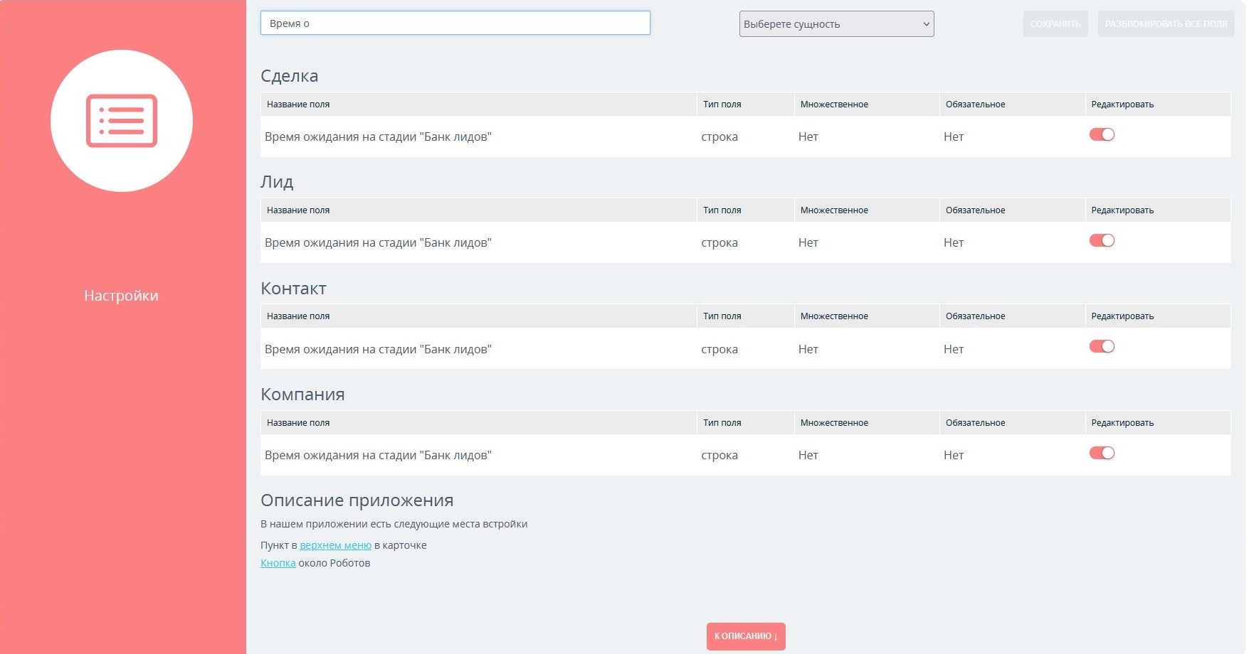 Приложение запрещает сотрудникам редактирование выбранных пользовательских полей в CRM: сделки, лиды, контакты, компании.