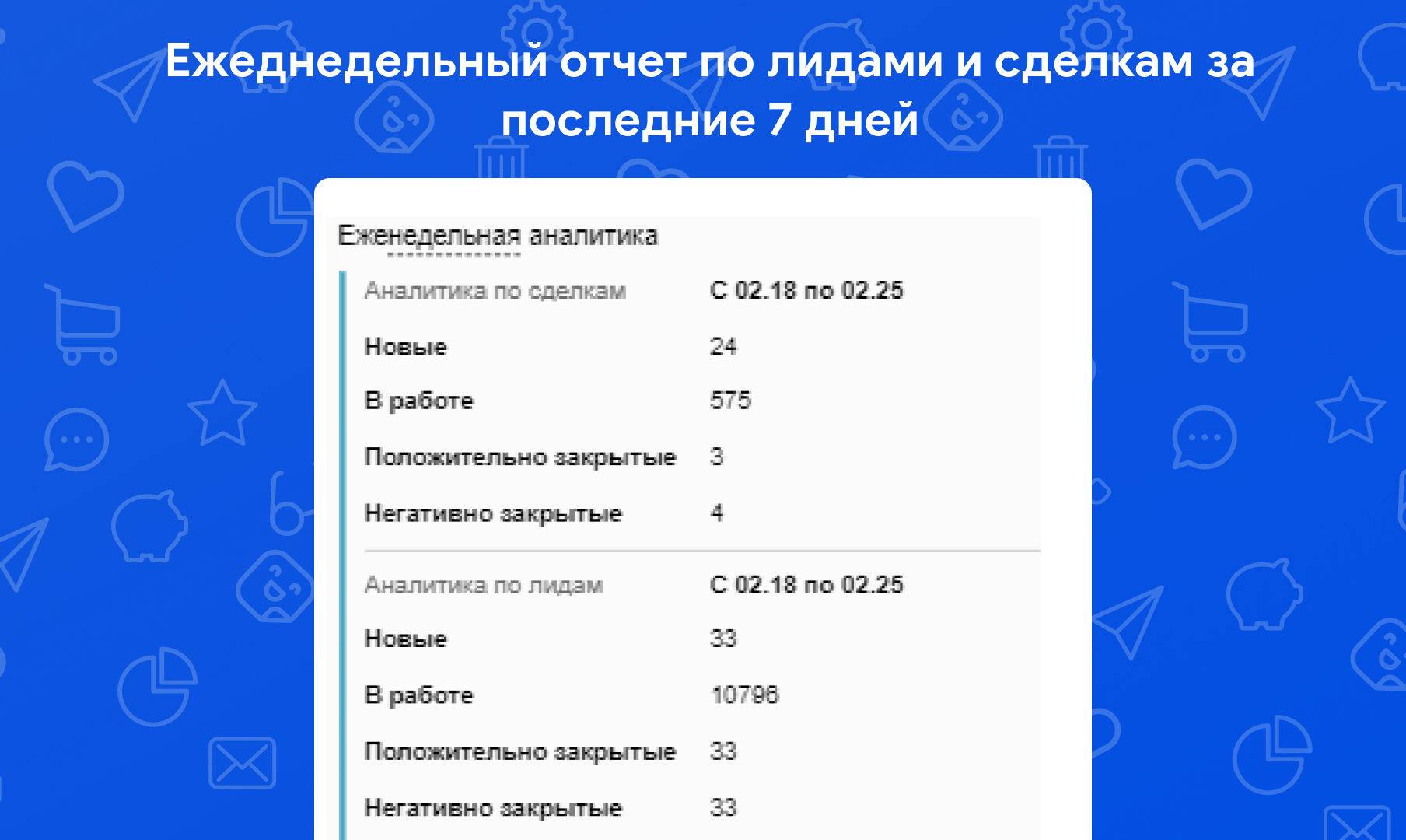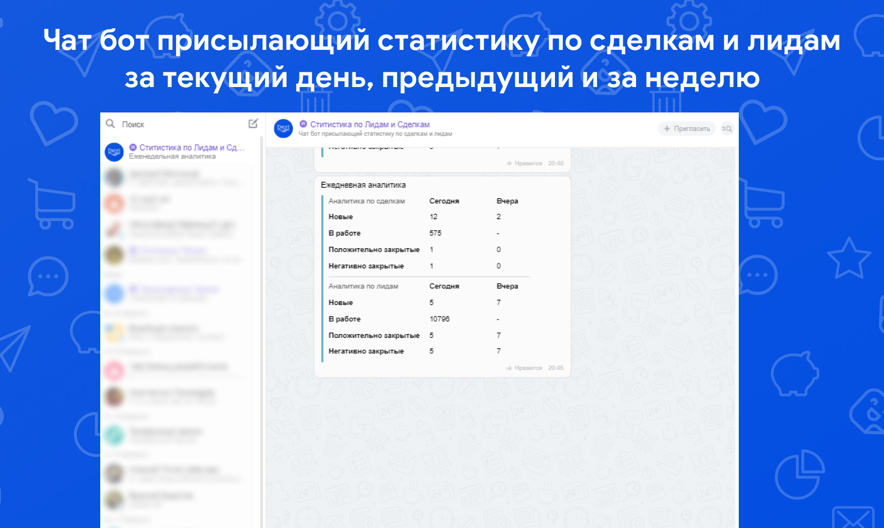 Чат бот, который присылает установленному сотруднику статистику по лидам и сделкам