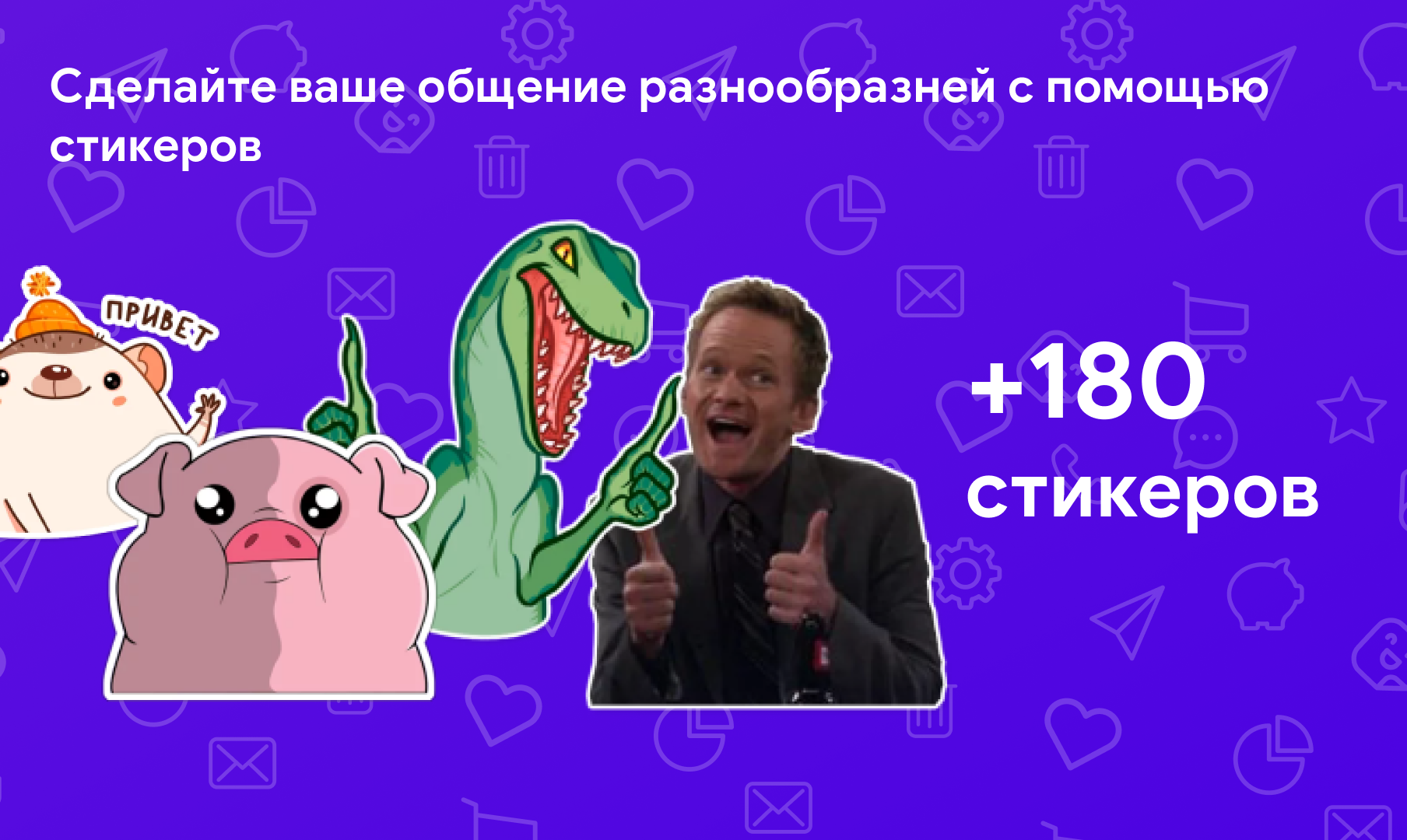 Стикеры встраиваются в новый чат для расширения возможностей смайлов и giphy