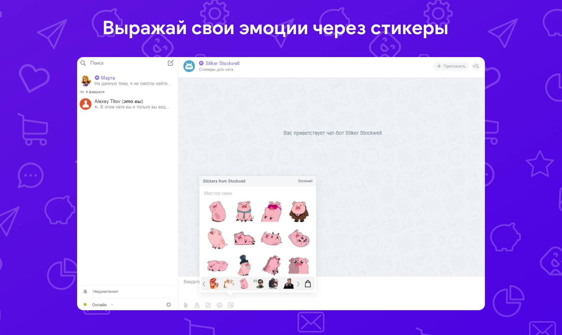 Используйте стикеры в любых групповых или индивидуальных чатах, а также в открытых линиях