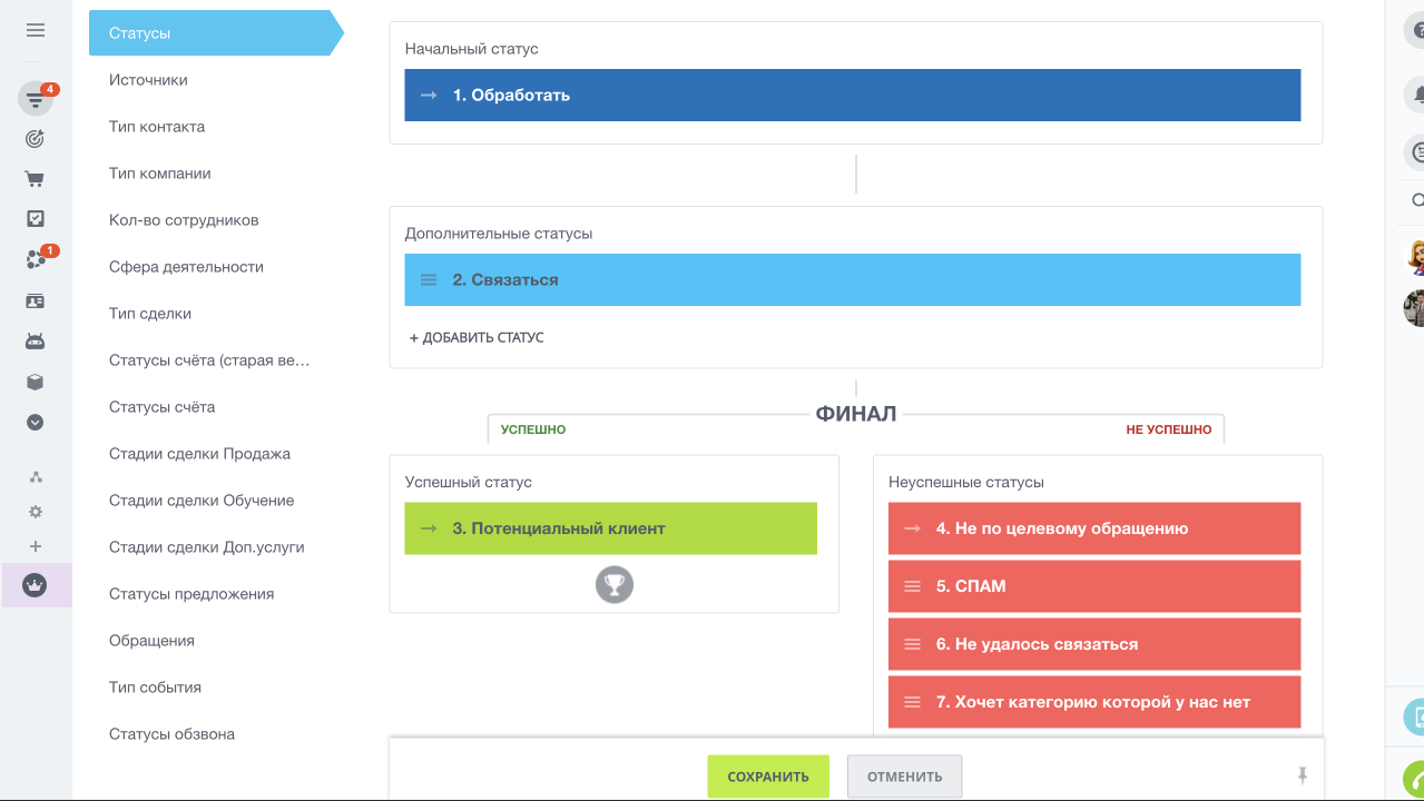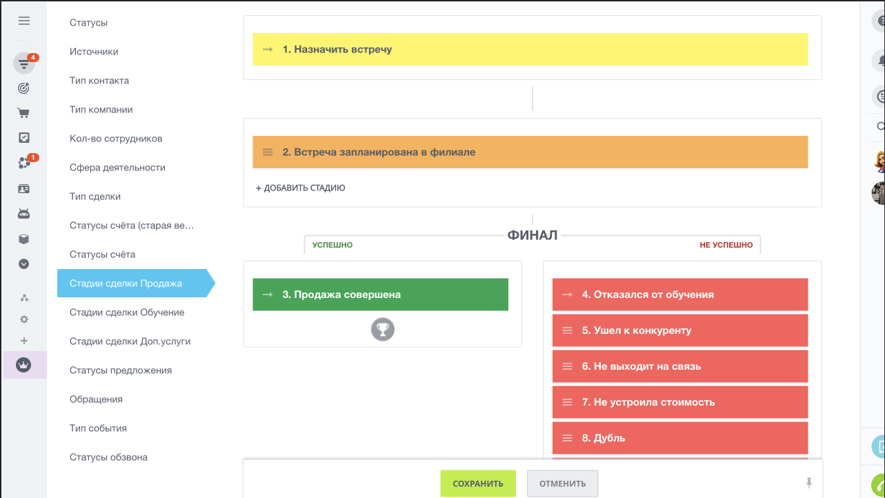 Стадии продажи (для лидов и сделок в воронке продаж):