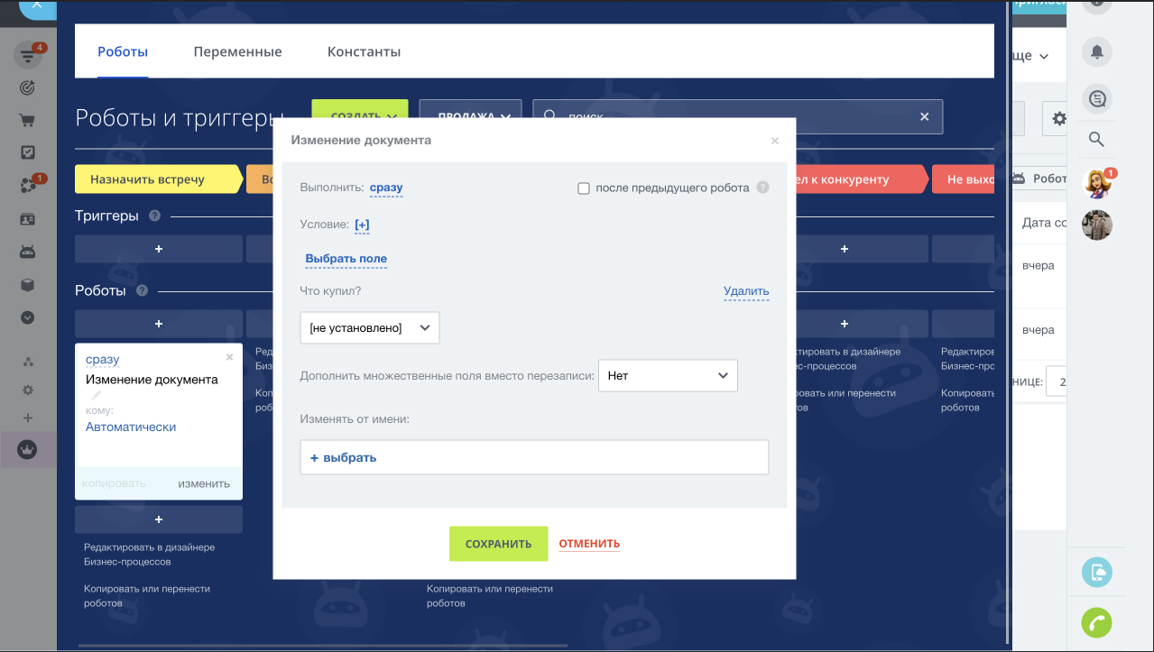 Карточка сделки содержит: