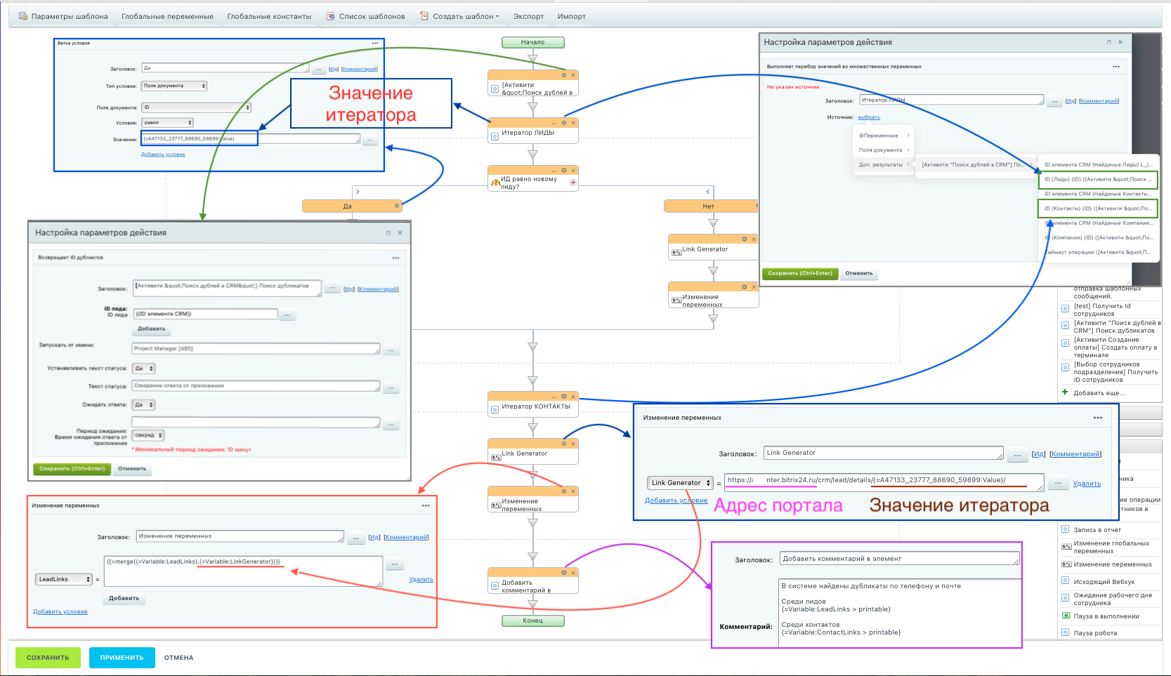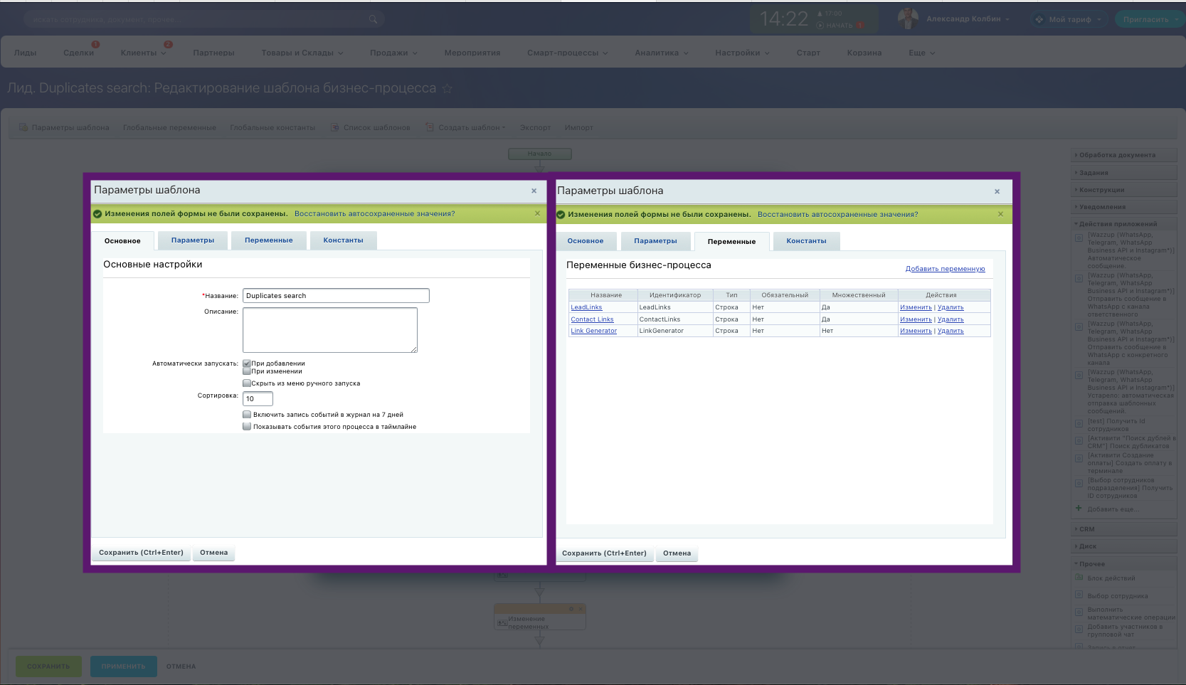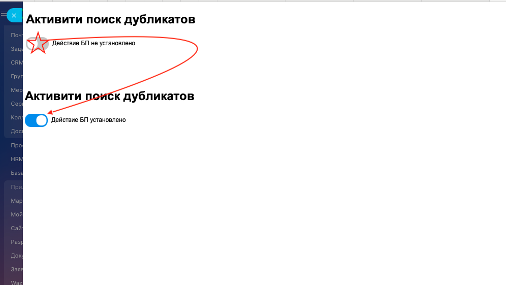 Активити "Поиск дублей в CRM" добавляется в бизнес-процессы Битрикс24 и: