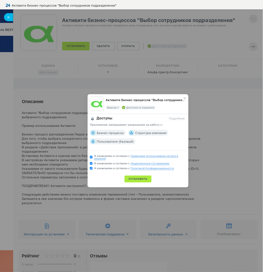 Активити бизнес-процессов «Выбор сотрудников подразделения»