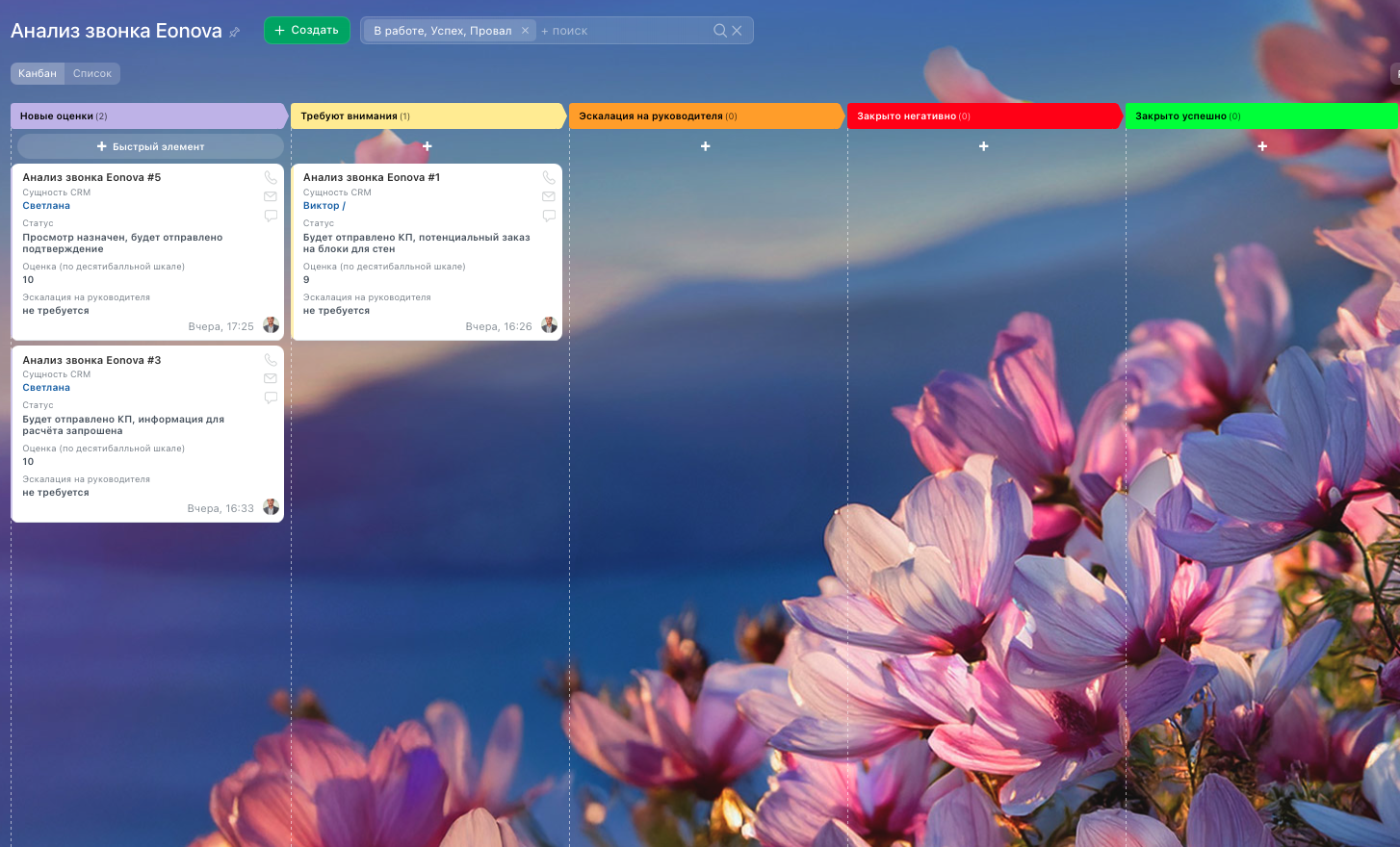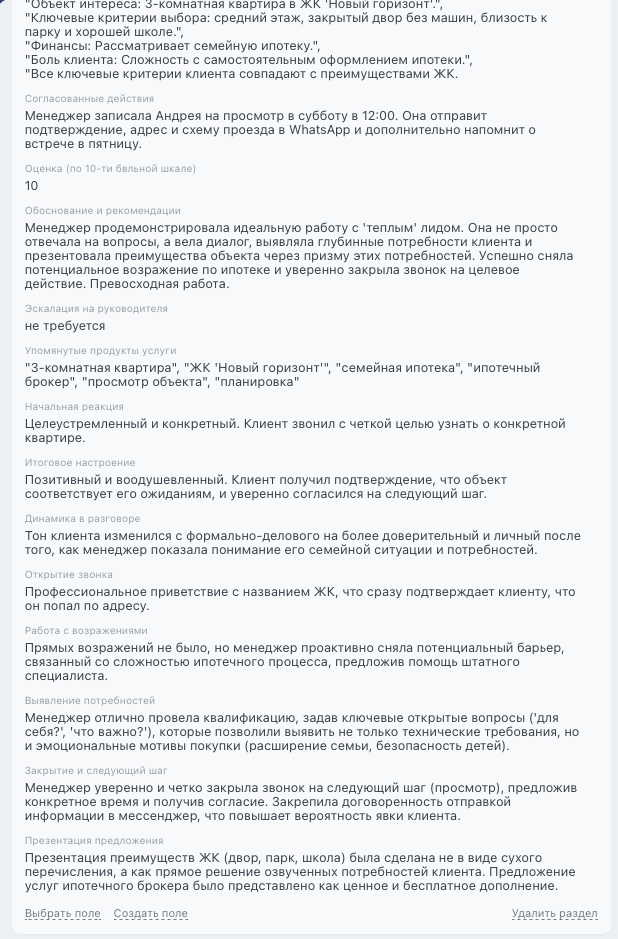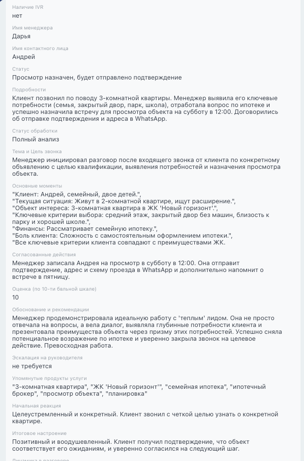 Каждый звонок оценивается AI (скорость, эмоции, договорённости).