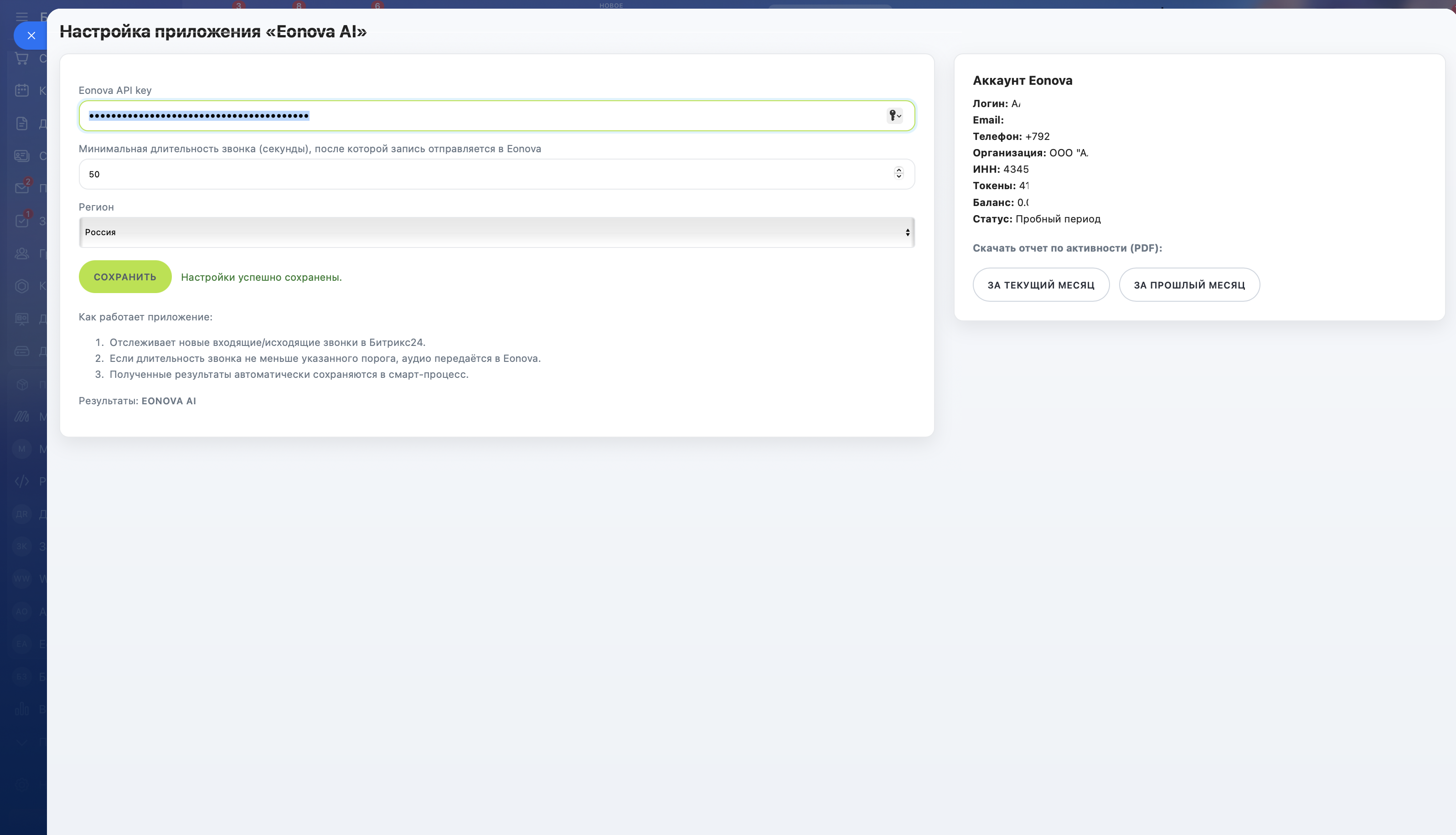 Автоматически отправляет запись звонка из Битрикс24 в Eonova.
